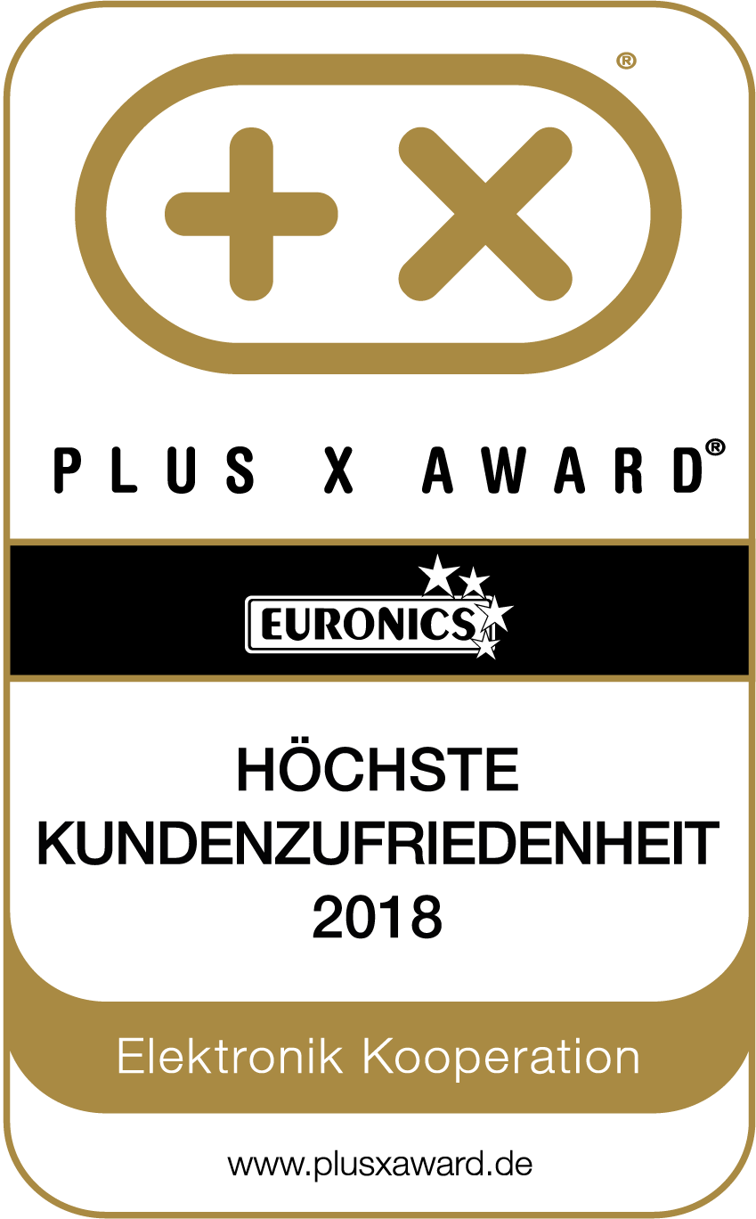 Neben der Auszeichnung für die „höchste Kundenzufriedenheit“ erlangten Euronics und media@home im Juli 2018 auch den Plus X Award für „Deutschlands beste Händler“.