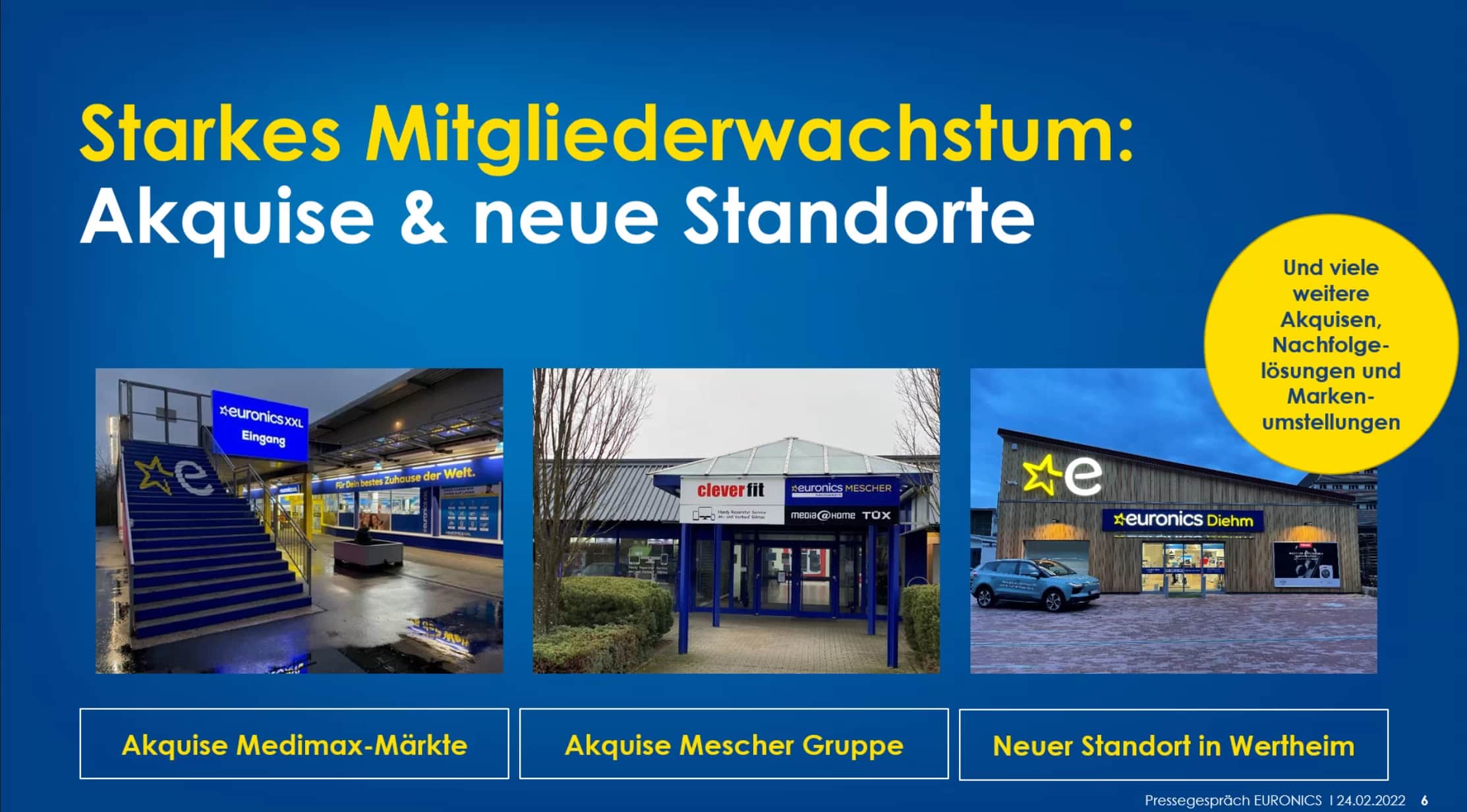 Das signifikante Wachstum der Verbundgruppe zeigt sich nicht nur im Umsatz, sondern auch bei einem Blick auf die Standortentwicklung. So wechselten, wie infoboard.de bereits berichtete, zum Jahresbeginn 2022 die Elektronikfachmärkte der Vorteil Center in Asbach und Unkel von der MediMax-Gruppe zu Euronics und firmieren fortan als Euronics XXL-Fachmärkte. Auch die Mescher Gruppe wurde Teil von Euronics und ergänzt die Verbundgruppe mit drei Standorten (Miele Center Mescher in Ettlingen, Euronics Mescher in Bretten und Mescher Lagerstore in Durlach).