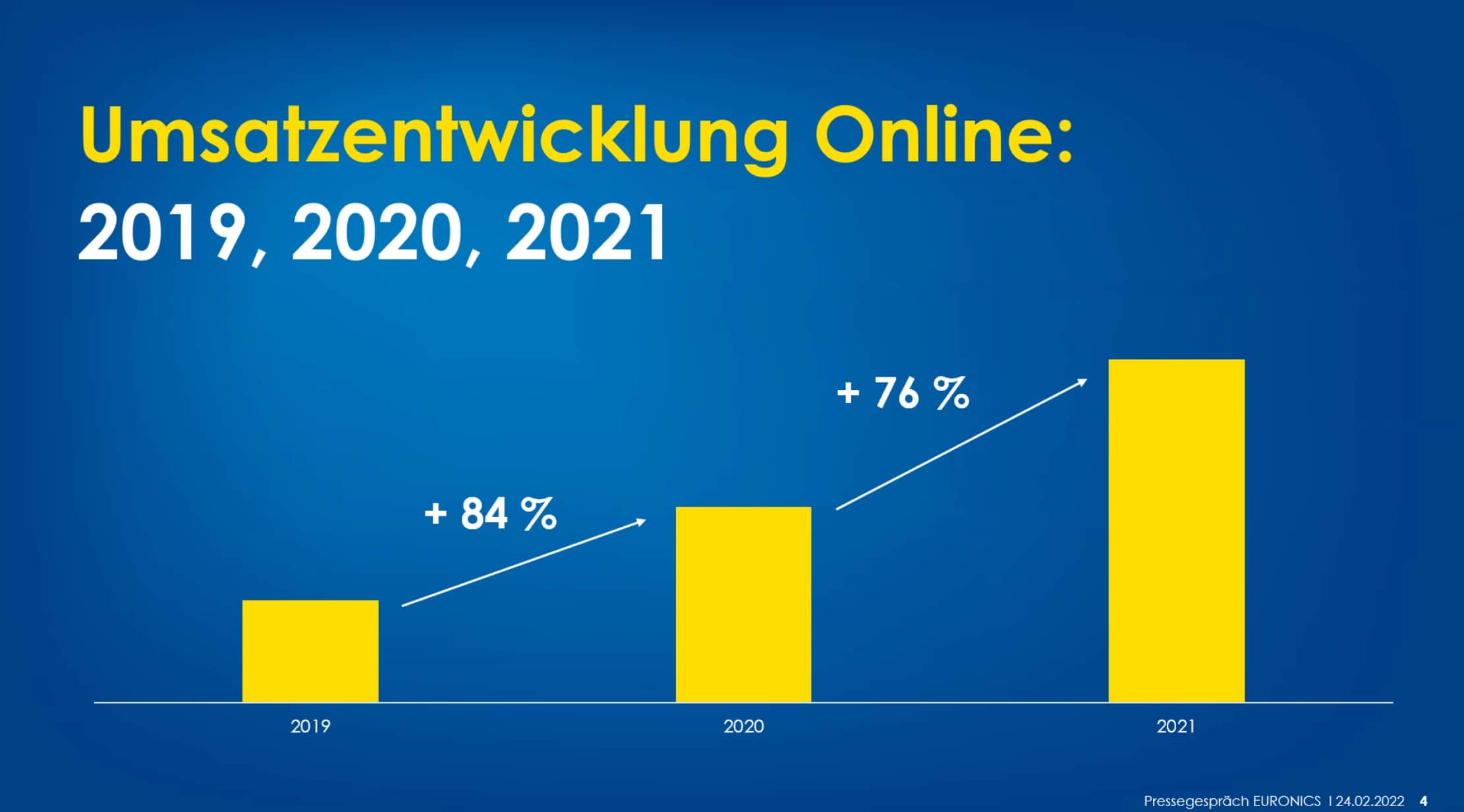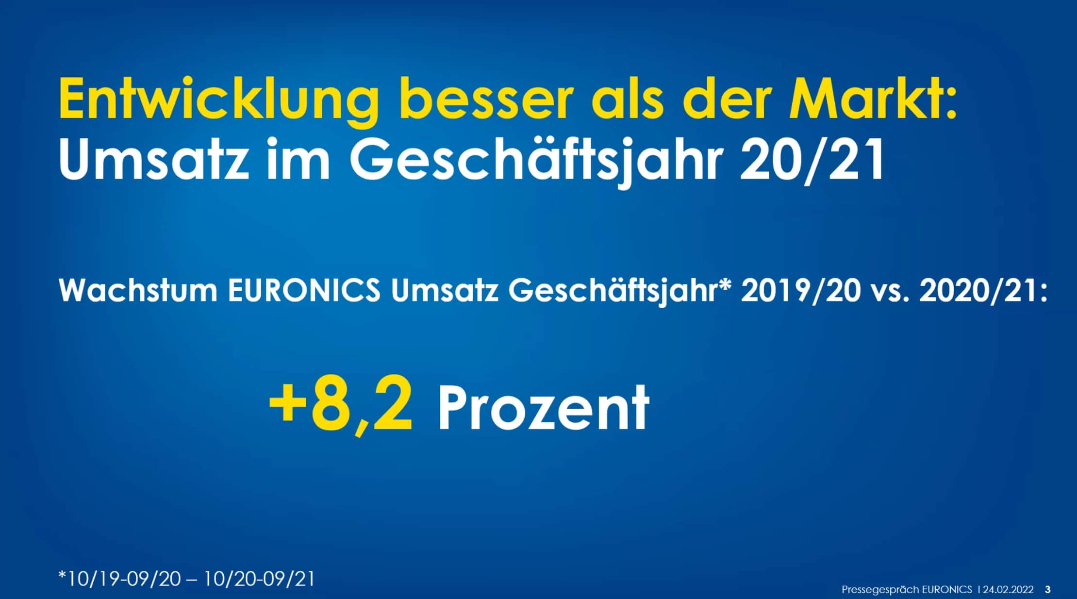 Das Geschäftsjahr 2020/2021 hat die Verbundgruppe aus Ditzingen mit einem starken Umsatzplus von satten 8,2% abgeschlossen – deutlich über dem Niveau des Gesamtmarktes. Im Online-Geschäft verzeichnet Euronics gar eine Steigerung von 76% im Vergleich zum Vorjahr. Ein bärenstarker Aufwärtstrend.
