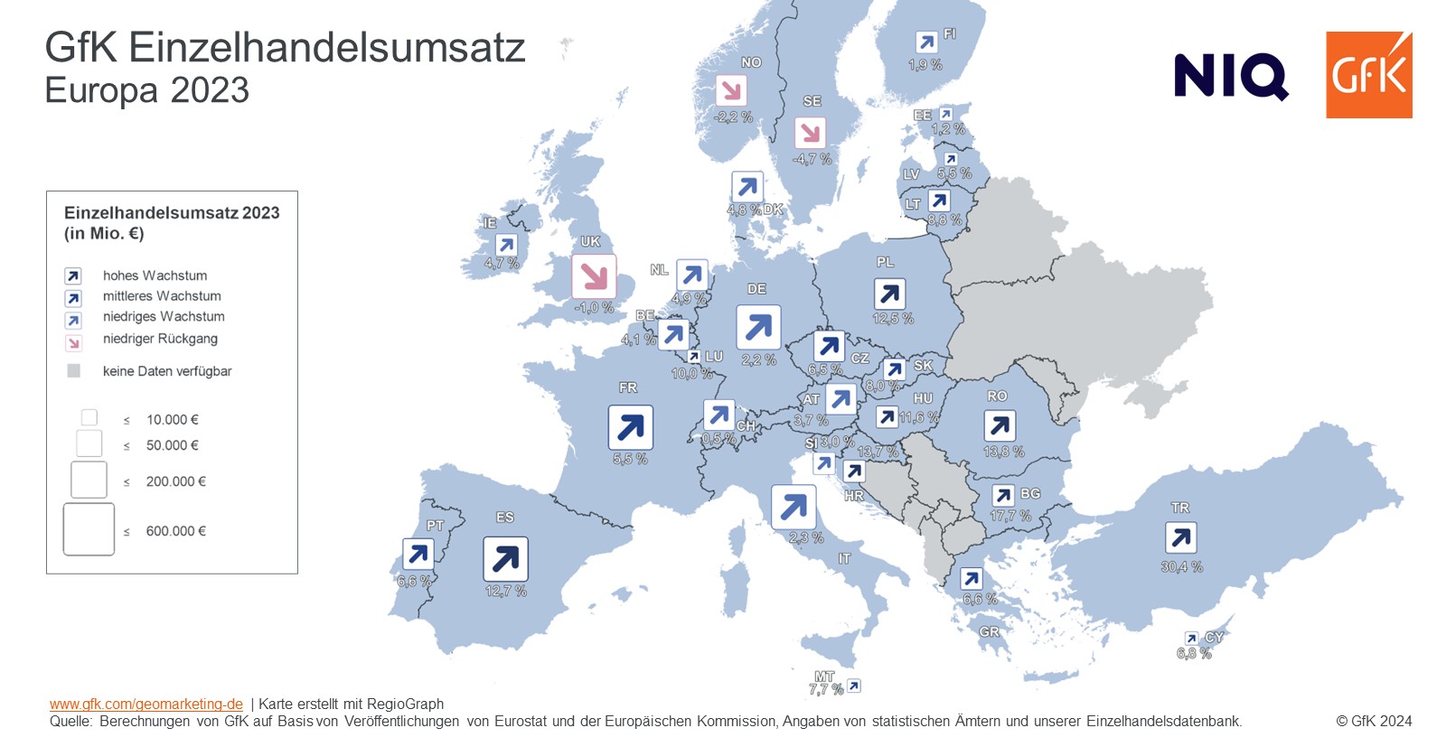 Die höchsten Wachstumsraten innerhalb der EU waren, laut GfK, in osteuropäischen Staaten wie Bulgarien (+18%), Rumänien (+14%) und Kroatien zu beobachten (+14%), wobei auch größere Märkte wie Spanien und Polen Wachstumsraten von über 12% verzeichneten.