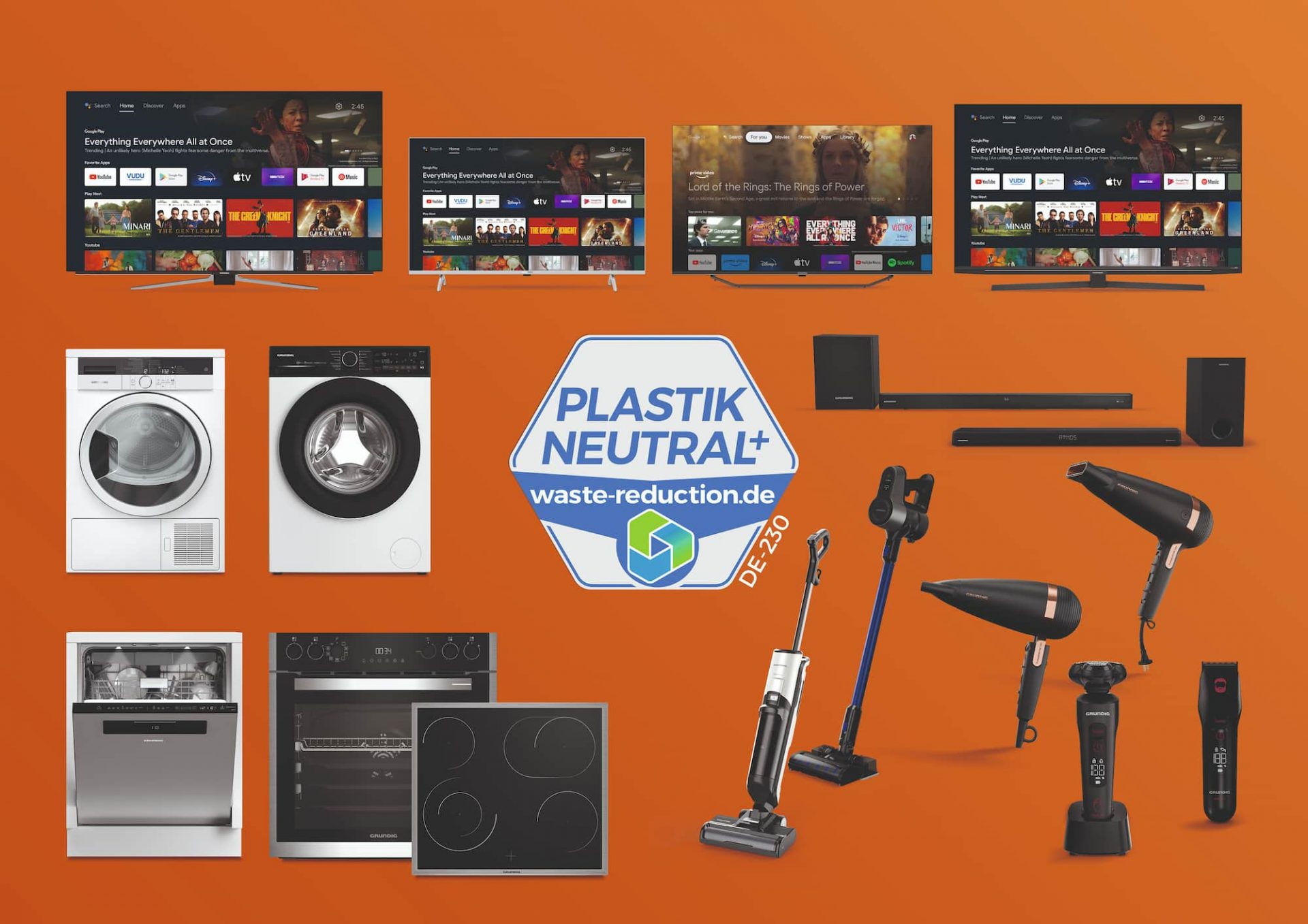 Heißt zum Beispiel: Enthält eine Waschmaschine 12 Kilogramm Kunststoff, werden auch 12 Kilogramm Kunststoffabfälle aus der Umwelt zurückgeholt. Dafür arbeitet Grundig mit WasteReduction (WasteReduction Plus UG) zusammen. Das nicht gewinnorientierte Social-Impact-Start-up befreit weltweit die Umwelt von wildem Plastikmüll und sorgt zudem dafür, dass der Kunststoff gar nicht erst in die Natur gelangt. Darüber hinaus finanziert WasteReduction Bildungsprojekte für einen sensiblen Umgang mit Kunststoffen. Die mit dem „PLASTIKNEUT-RAL+“-Siegel von WasteReduction gekennzeichneten Produkte von Grundig sind ausschließlich im Fachhandel erhältlich.
