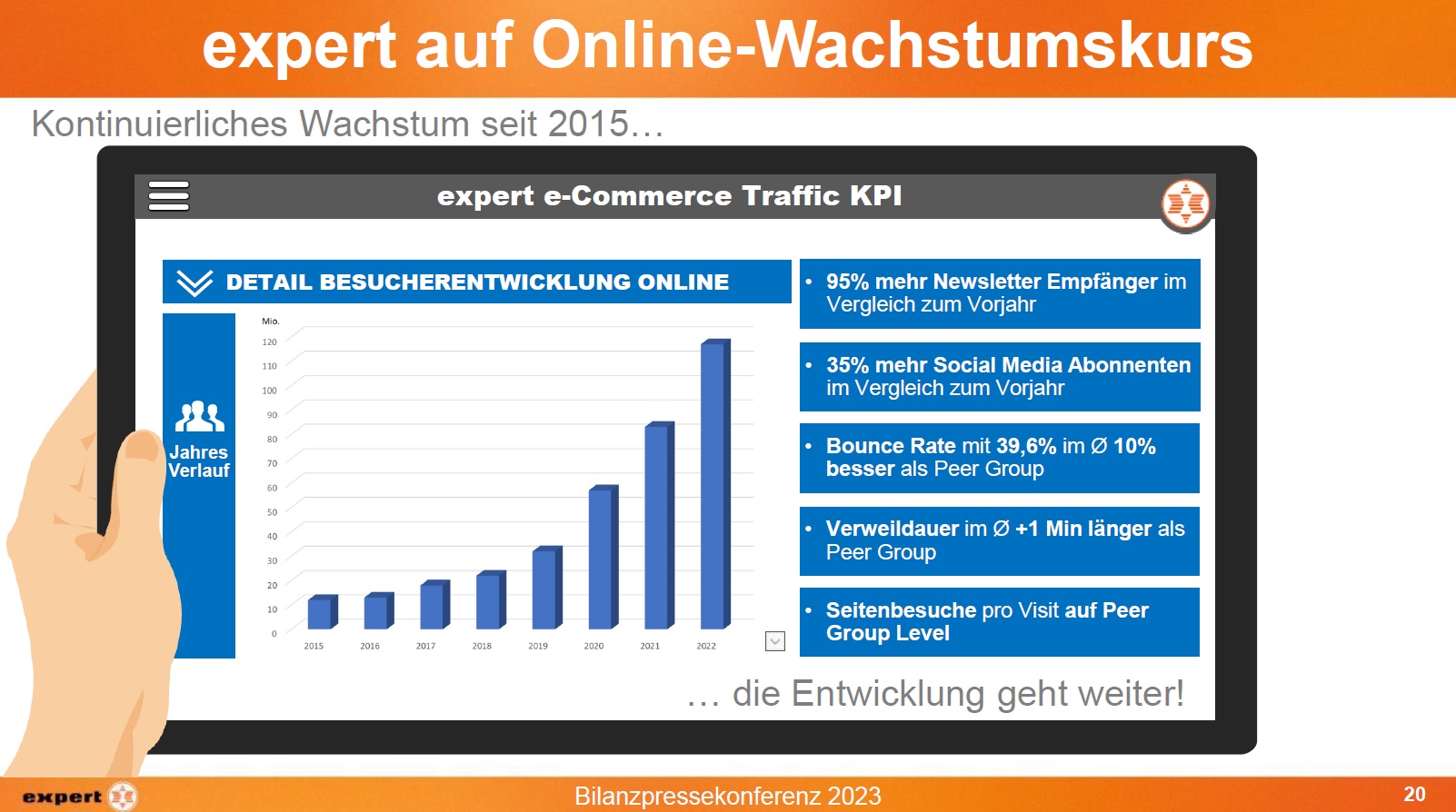 Müller weiter: „Neben den Nachwirkungen der Corona-Pandemie galt es nun auch den Auswirkungen des Ukraine-Kriegs und der Energiekrise zu begegnen, die einen starken Einfluss auf Inflation und Konsumklima hatten. Durch zielgerichtete Maßnahmen sowie die hervorragende Zusammenarbeit mit unseren Gesellschaftern, Industrie- und Dienstleistungspartnern sowie unseren Mitarbeitern haben wir das abgelaufene Geschäftsjahr jedoch erfolgreich gemeistert und so einmal mehr bewiesen, dass expert die leistungsfähigste Kooperation im Elektronikfachhandel ist. Unser Konzept überzeugt!“