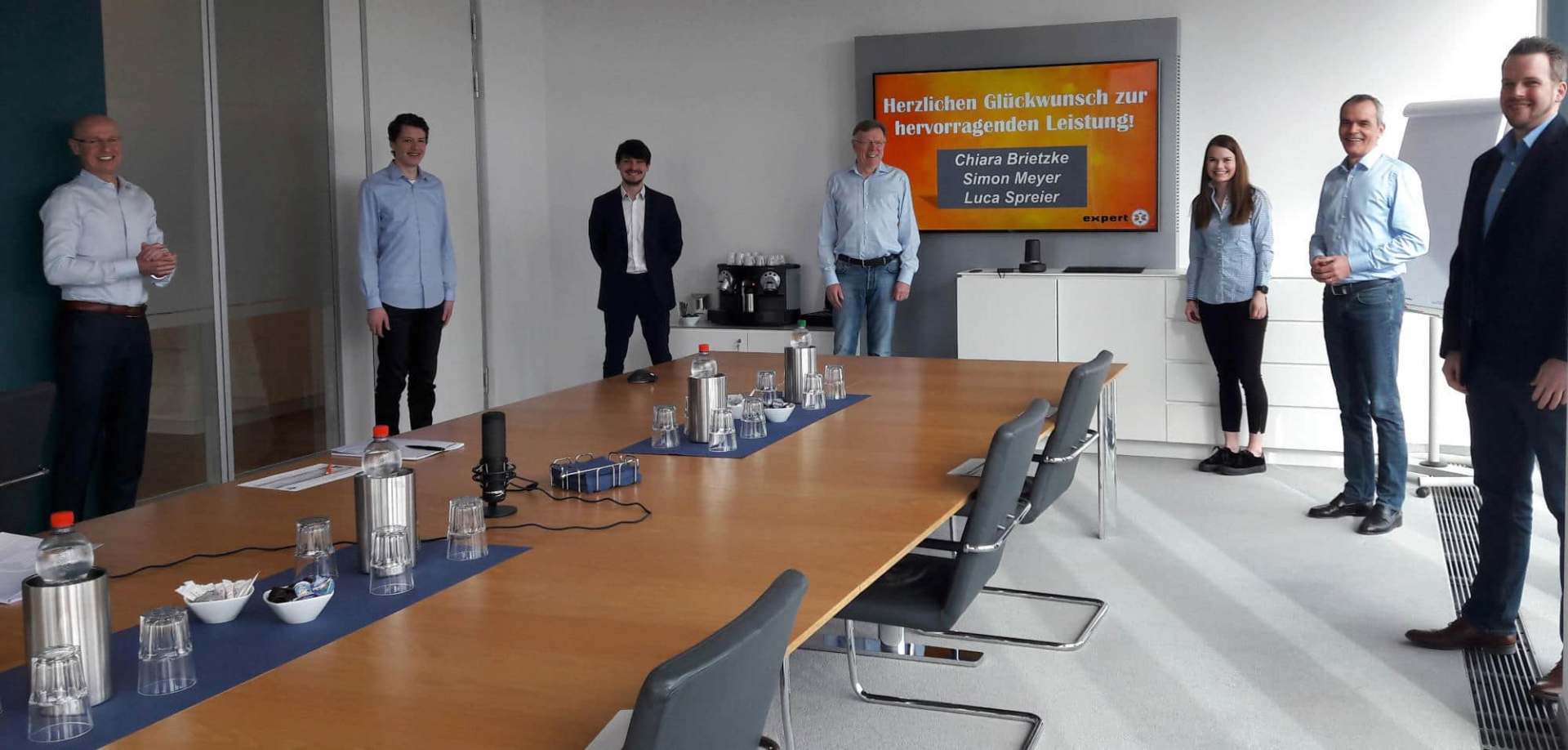 Drei Auszubildende bzw. Dual Studierende aus der Unternehmenszentrale von expert haben jetzt ihre Abschlussprüfungen zum Kaufmann bzw. zur Kauffrau im Groß- und Außenhandel absolviert und durchweg mit sehr guten Ergebnissen bestanden.