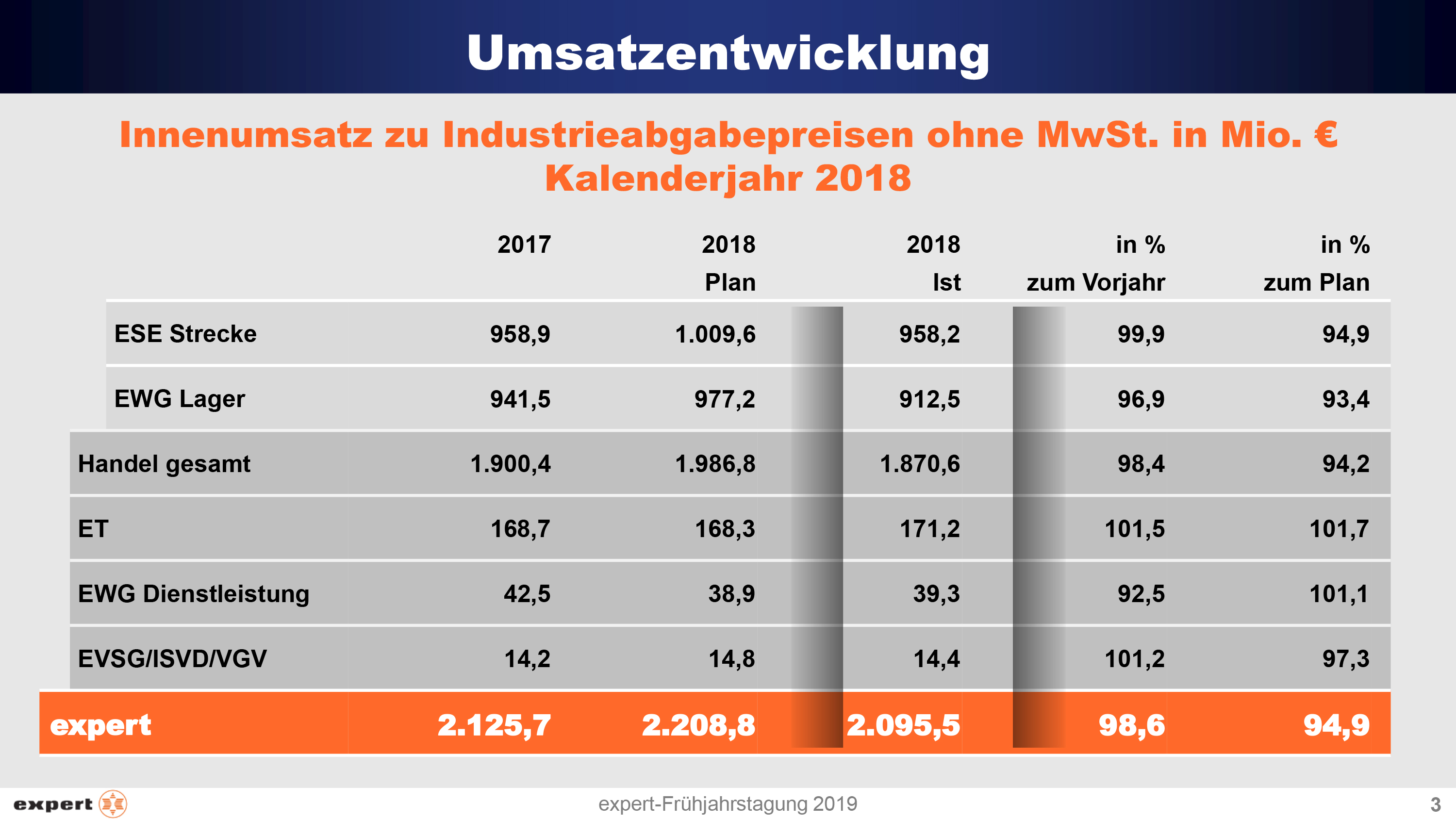 Müller mit Rückblick und ersten Schritten nach vorn. „Wir haben einen Online-Weg gewählt, den viele – auch bei den Lieferanten – nicht verstanden haben.“ Mit dem zur Saison gestarteten Onlineshop unter Expert.de habe die Verbundgruppe einen Zwischenschritt realisiert, an dem man Kunden in ganz Deutschland die Preise und die Verfügbarkeit eines breiten Warensortiments anzeigen könne und dafür flächendeckend sowohl die Abholung im Geschäft wie auch den Online-Versand anbieten könne. Das Resultat: „In den Monaten November 2018 bis Ende Januar 2019 verzeichnete das zentrale Onlineangebot unter expert.de eine erfreuliche Entwicklung.“