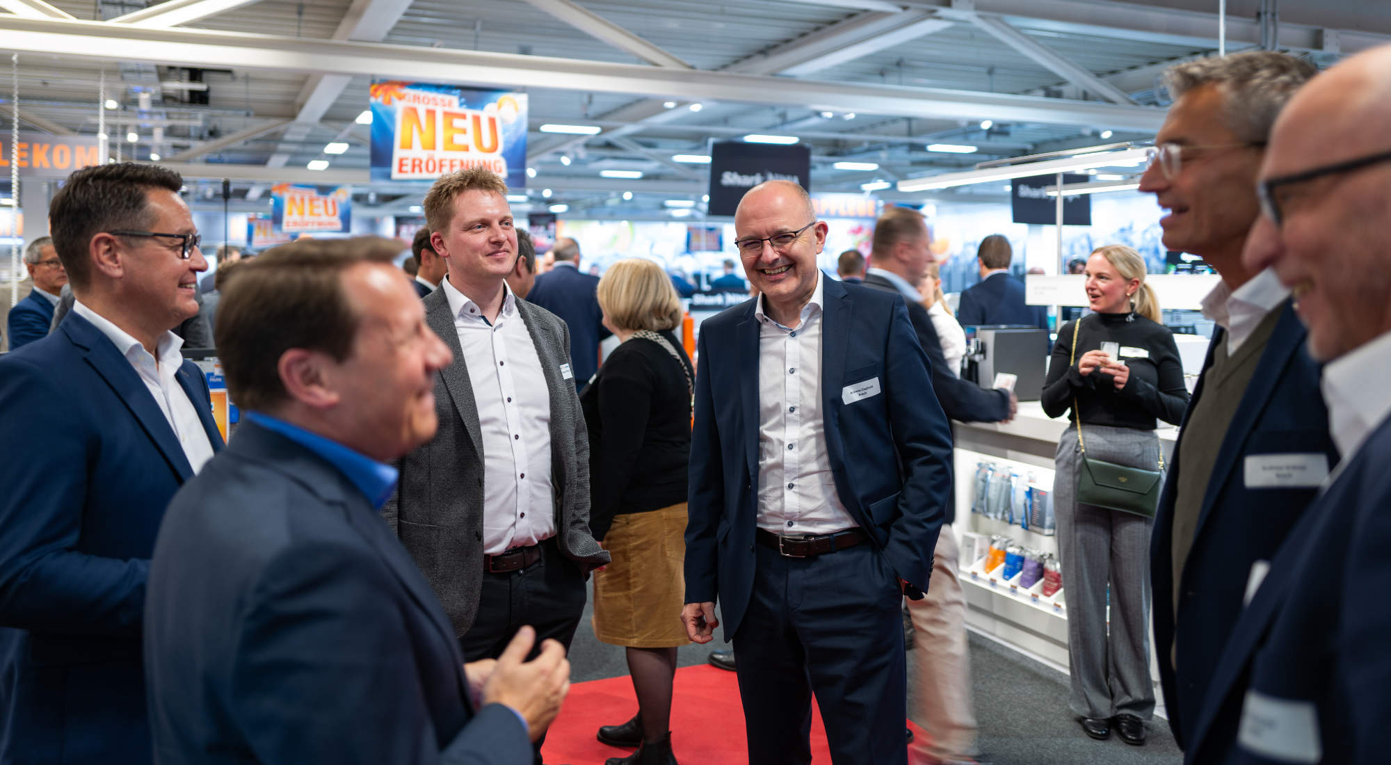 Ein Highlight des Abends war das neue, flexible Ladenbaukonzept, das Verkaufsflächen mit einem vertriebsorientierten Design und innovativer Präsentation vereint. Diese Ausstellungsflächen bieten den Industrie- und Dienstleistungspartnern zukünftig eine dynamische Bühne und stehen sinnbildlich für das Konzept „Erlebnisshopping“ auf hohem Niveau.