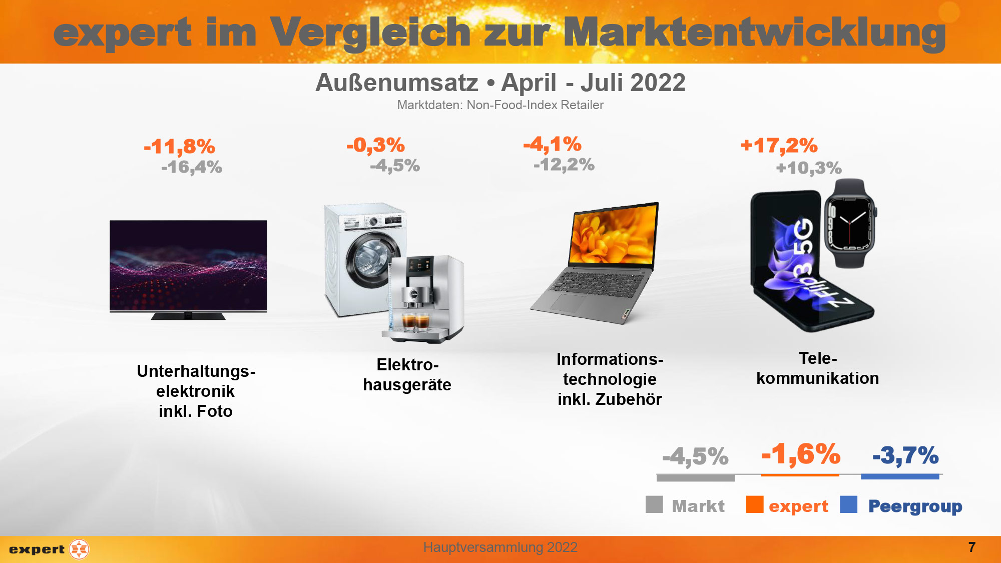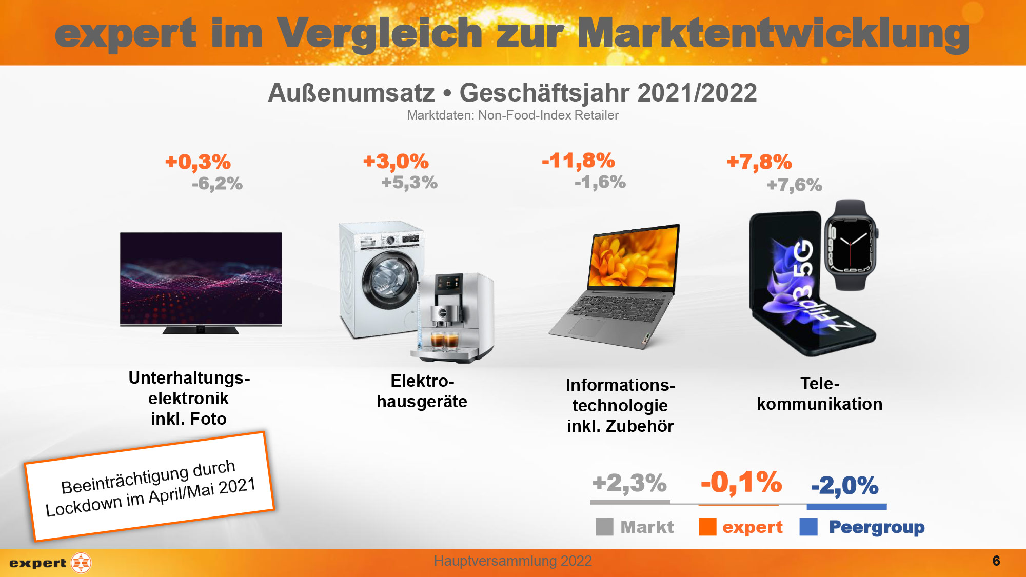Auch wenn sich expert im Geschäftsjahr 2021/2022 insgesamt (Markt: +2,3%, expert -0,1%) als auch bei Elektrohausgeräten (Markt +5,3%, expert 3,0%) etwas schlechter als der Gesamtmarkt entwickelt hat, geht man in Langenhagen mit vorsichtigem Optimismus ins Weihnachtsquartal. Dr. Müller: „Wir fokussieren uns jetzt darauf, dass sich unsere Händlerinnen und Händler auf die Saison konzentrieren können.“