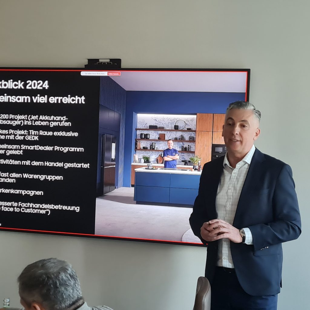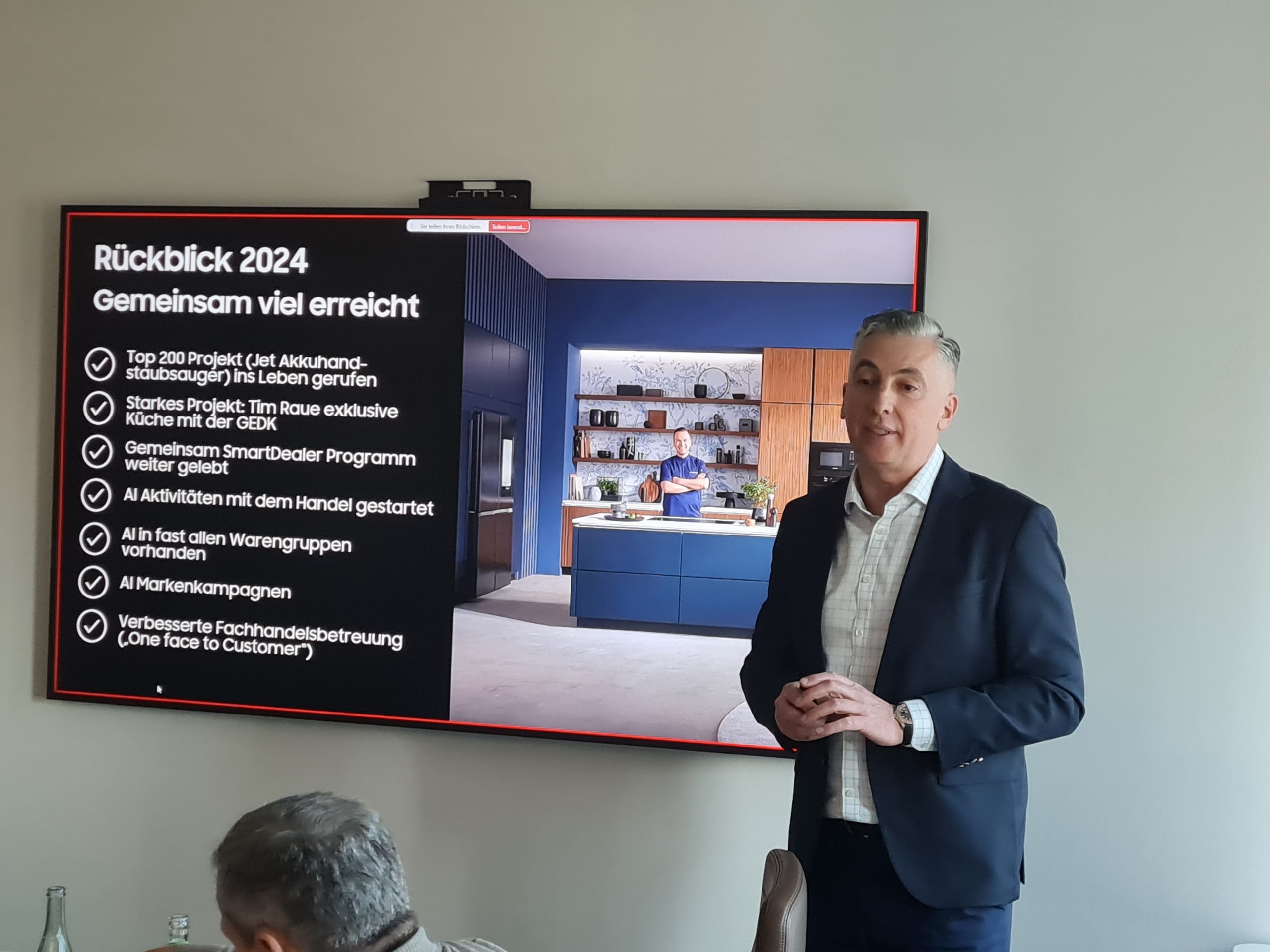 Dem Küchen- und Möbelfachhandel stehen ebenfalls eigens abgestimmte Vertragswerke, eigene abverkaufsunterstützende Maßnahmen und maßgeschneiderte Trainingsmaßnahmen zur Verfügung. Mit Testimonial Tim Raue, der 2025 bereits im fünften Jahr in Folge für die Produkte aus dem Einbau-Segment wirbt, sowie die Kooperation mit der GEDK stärkt Samsung den Küchen- und Möbelfachhandel und führt ihm kaufkräftige Zielgruppen zu. So unterstreicht Samsung seine Strategie 2025 ganz nach dem Motto „Kontinuität und Stabilität“.