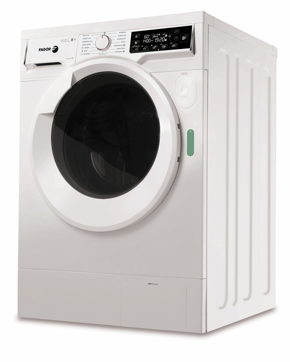 Die Fagor FG 8314D Waschmaschine ist ein Frontlader mit automatischer Waschmitteldosierung Dose-e. Das Gerät in der Energieeffizienzklasse A+++ ist 60 Zentimeter breit.