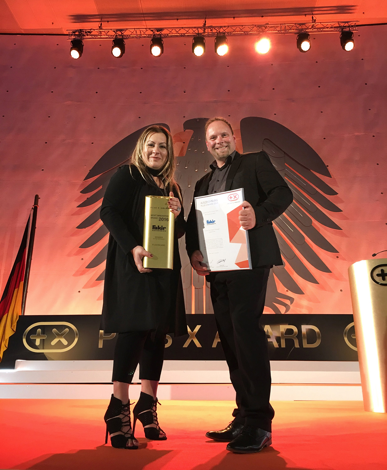 Die Erfolgsserie bei Fakir setzt sich fort: Nach der Auszeichnung als „Marke des Jahrhunderts“ im vergangenen Jahr, der diesjährigen Topbewertung durch Stiftung Warentest sowie der Auszeichnung des Starky | HSA 252 zum „Produkt des Jahres 2016“ hat Fakir auch die höchste Auszeichnung des Plus X Awards erhalten: In der Produktgruppe „Floorcare“ hat der Bodenpflegespezialist den „Most Innovative Brand Award“ verliehen bekommen. Damit erhält Fakir in kürzester Zeit bereits die dritte große Auszeichnung.