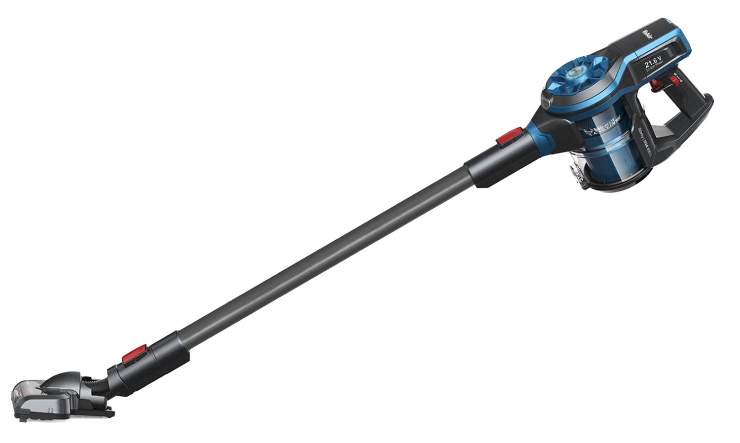 Das Gerät ist sowohl als Stiel- als auch als wendiger Handstaubsauger einsetzbar. Es reinigt Flächen und schwer zugängliche Stellen mit LED-Leuchten sogar bei schlechten Lichtverhältnissen. Der leicht und sauber zu entleerender Staubbehälter bietet Platz für 0,4 l Trockenschmutz und der E.P.A.-Filter garantiert perfekte Hygiene.
