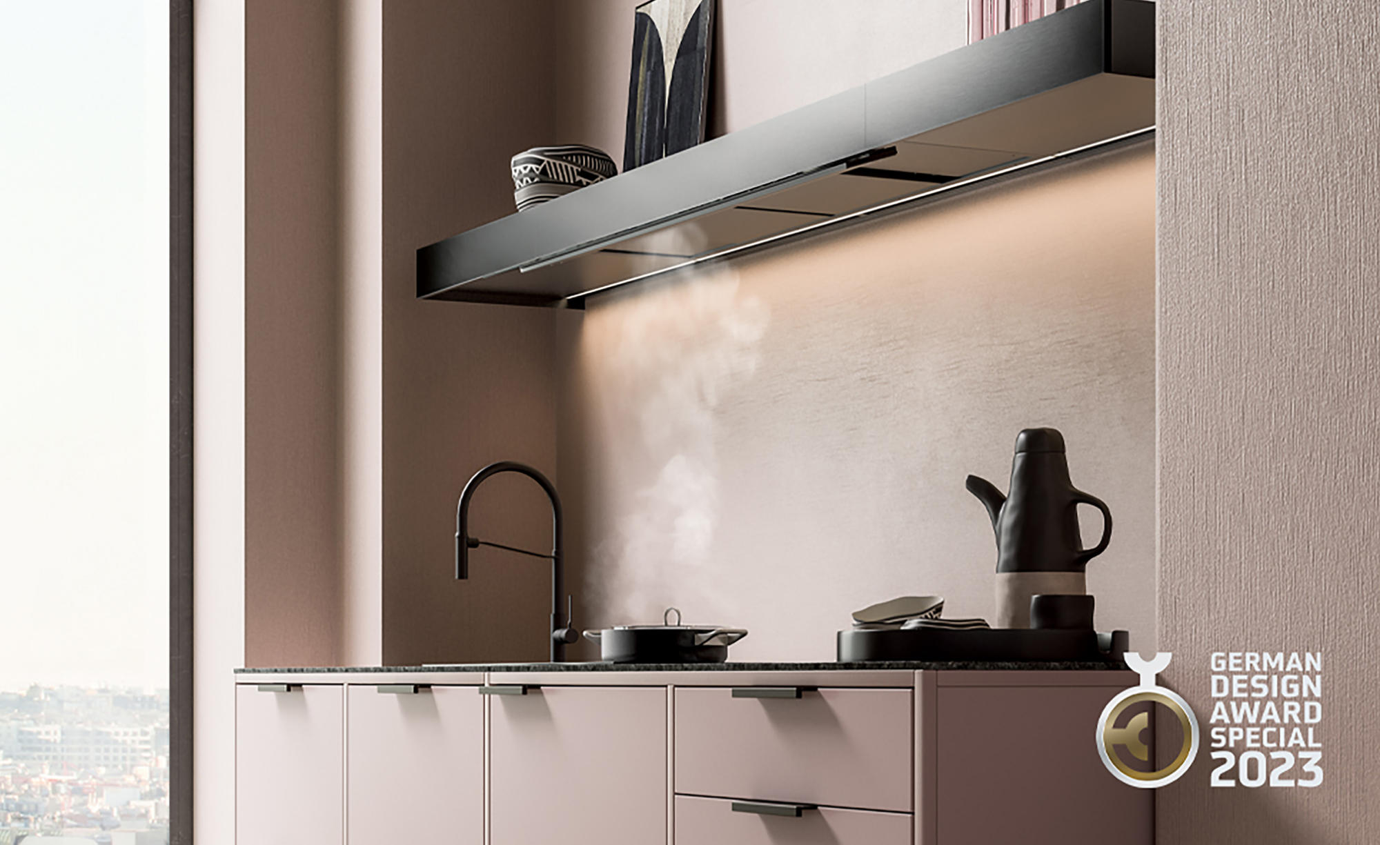 Der Hersteller erhielt 2022 bereits mehreren Designpreisen, wie dem Good Design Award für die extrem flache Inselhaube Light, die insgesamt fünffach preisgekrönt wurde.
