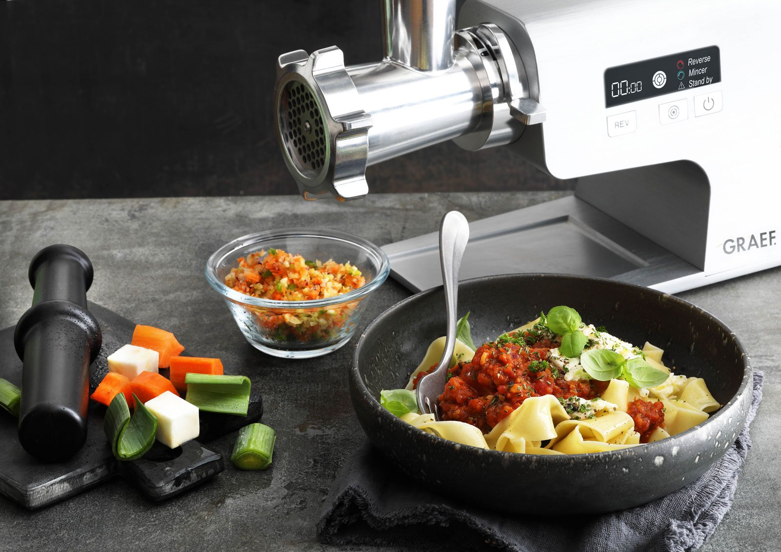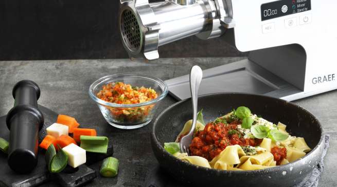 Fleischlos glücklich? Kein Problem mit diesen beiden wunderbaren Feelgood-Rezepten von Graef. In der Hauptrolle: Taufrisches Gemüse, bestes Olivenöl – und ein Fleischwolf von Graef.
