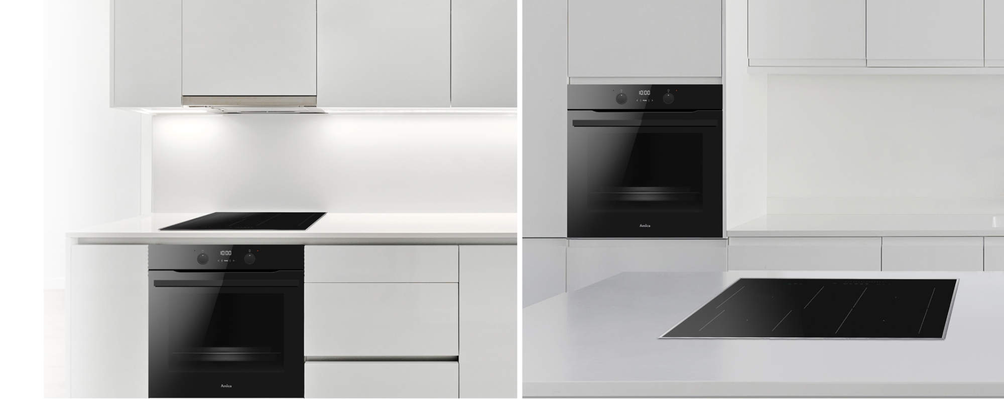 Klassische Herdsets werden über das Frontpanel des Backofens gesteuert, wodurch das Kochfeld keine separaten Bedienelemente hat. Die FlexConnect Herdsets von Amica lösen dieses Problem: Sie verfügen über eine integrierte Splitterbox, die es ermöglicht, Backofen und Kochfeld über einen einzigen Herdanschluss zu betreiben. Dadurch kann das Kochfeld beispielsweise in einem Küchenblock installiert werden, während der Backofen ergonomisch in einem Hochschrank Platz findet.
