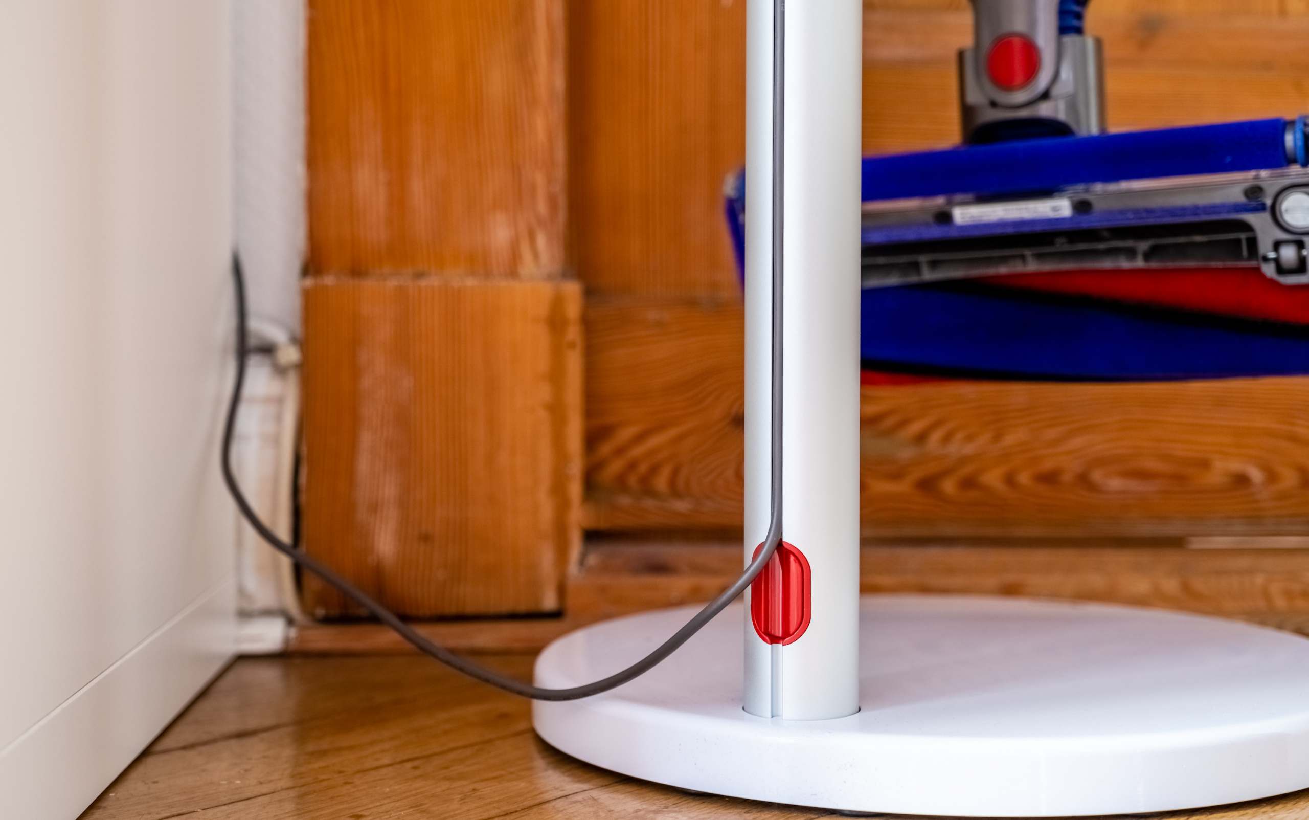 Sei es man will oder man darf keine Löcher im Zuhause bohren um eine Halterung an der Wand zu montieren oder das Risiko einer langfristigen Tapetenverschmutzung durch eine derartige Aufhängung vermeiden. Dyson hat für diese Probleme zum Glück eine stylishe Lösung im Angebot: eine freistehende Ladestation: Dyson V11 Floor Dok.