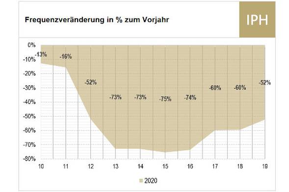 Eine Analyse der von IPH, führender Dienstleister für alle Fragen rund um Handelsimmobilien, gemangten Shopping-Center zeigt, dass die Frequenzen auch schon vor der Corona-Krise gegenüber 2019 um 15% zurückgingen. Während des Lockdowns stieg der Frequenzrückgang im Durchschnitt 73%. Allerding schwankte der Wert während der Lockdown-Phase je nach Objekt und Nahversorgungsanteil stark zwischen -40% und -100%. An den Standorten, an denen seit der 17. Kalenderwoche auch Nonfood-Anbieter mit weniger als 800 Quadratmeter Verkaufsfläche eröffnen durften, ist die Frequenz um zehn Prozentpunkte angestiegen und erreicht nun im Schnitt 40% des Vorjahreswerts.