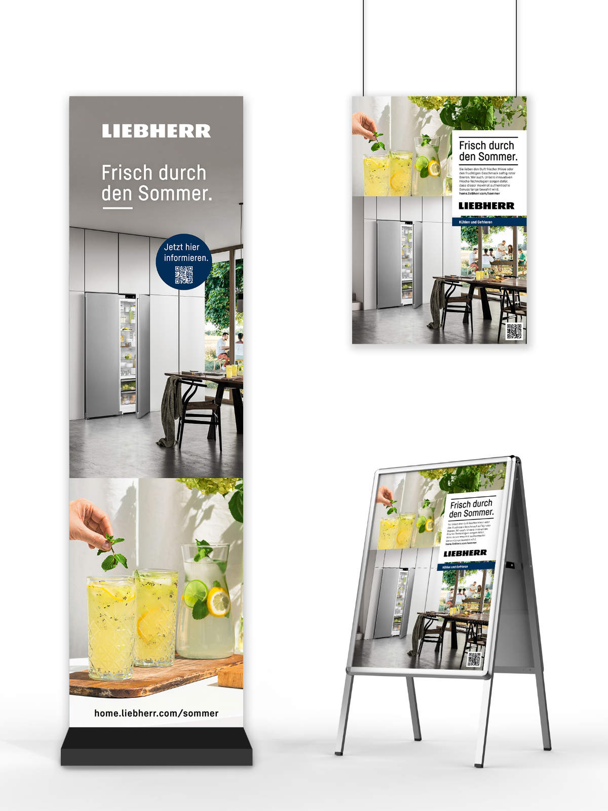 Bereits Mitte Mai wird Liebherr seine große Kampagne in Deutschland starten, die sich über den gesamten Sommer bis zum August erstrecken wird. Mit dem Slogan „Frisch durch den Sommer“ positioniert sich das Traditionsunternehmen deutschlandweit in Print- und Onlinemedien als der Experte für Kühlen und Gefrieren. Entsprechend einer 360-Grad-Kampagne werden auch dem Handel begleitende POS- und Kommunikationsmittel zur Verfügung gestellt.
