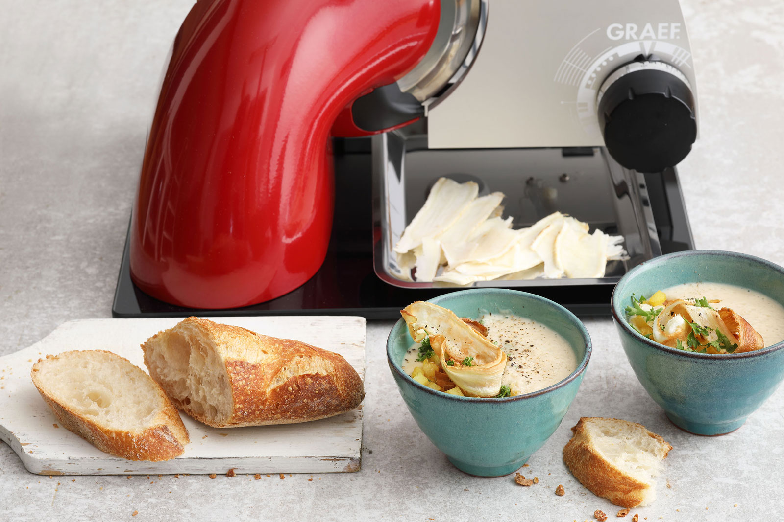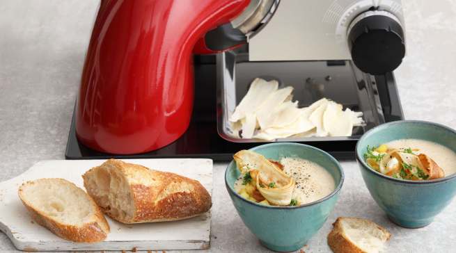 Rimböck weiß: „Frisch kochen ist das A und O für gesunde Ernährung.“ Meal Prepping ist dabei das Zauberwort. So lassen sich frische Mahlzeiten für die ganze Woche vorbereiten und es fällt leichter, auf Fast Food und Fertiggerichte zu verzichten. Denn auch wenn es mal schnell gehen muss, ist immer eine gesunde Alternative parat. „Preparation“, also Vorbereiten ist angesagt: Mit den passenden Küchenhelfern ein Leichtes. Die Feinschneider, beispielsweise von Graef aus Arnsberg, helfen im Nu, auch große Mengen frisches Gemüse aufzuschneiden und zu portionieren. Am Abend wandern die Gemüsescheiben dann nur noch in die Pfanne.