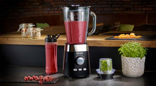 Aktuelle Trends wie „From Nose to Tail“ und „Leaf to Root“ spiegeln genau ihre These: Natürliche Lebensmittel umfänglich nutzen – viele pflanzliche und tierische Lebensmittel lassen sich komplett verwerten. Egal ob Rote Bete, Kohlrabi oder Karotten: „Die Nährstoffe in den Blättern sind häufig noch zahlreicher als im Gemüse selbst.“ So reduziert man nicht nur den Lebensmittelabfall, sondern bringt auch ganz neue Geschmäcke in die Küche: „Der Brokkolistrunk beispielsweise hat eine feine, nussige Note.“ Mit einem der Allesschneider in feine Scheiben geschnitten, verleiht er dem nächsten Auflauf einen ganz neuen Geschmack. Blattgrün verwendet die Ernährungsexpertin zum Beispiel für einen gesunden Frühstücks-Smoothie: „Meine liebste Smoothie-Mischung besteht aus zwei Handvoll Grün, einem kleinen Apfel, einer Orange, einer halben Zitrone und einer halben Banane, gemixt mit etwas Wasser.“ Mit einem Standmixer ist nicht nur ein gesunder Smoothie im Handumdrehen zubereitet, mit der dazugehörigen „To-go“-Flasche kann man den leckeren Muntermacher auch unterwegs genießen.