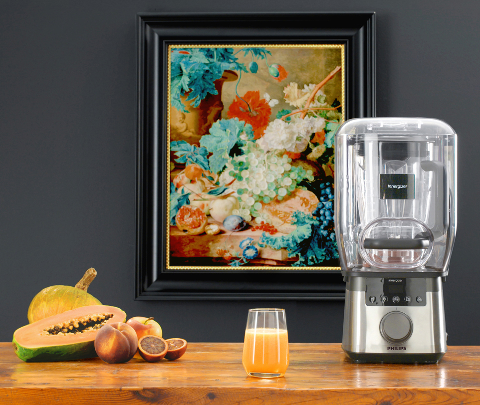 Um die Bedeutung von Obst und Gemüse für eine gesunde Ernährung zu unterstreichen, inszeniert Philips eine ungewöhnliche Kampagne. Zusammen mit seinem langjährigen Kooperationspartner, dem Rijksmuseum in Amsterdam, werden die „Philips Meisterwerk-Säfte“ ins Leben gerufen. Von drei Gemälden weltberühmter Meister, die in dem niederländischen Nationalmuseum hängen, werden über Nacht die Früchte und das Gemüse entfernt. Stattdessen sind kunstvolle angefertigte Replikate zu sehen, die mit leeren Obstschalen und ohne ihre „Hauptdarsteller“ seltsam leblos wirken. Eine künstlerische Verfremdung, die auf die hohe Bedeutung von Obst und Gemüse in unserem Alltag hinweist.