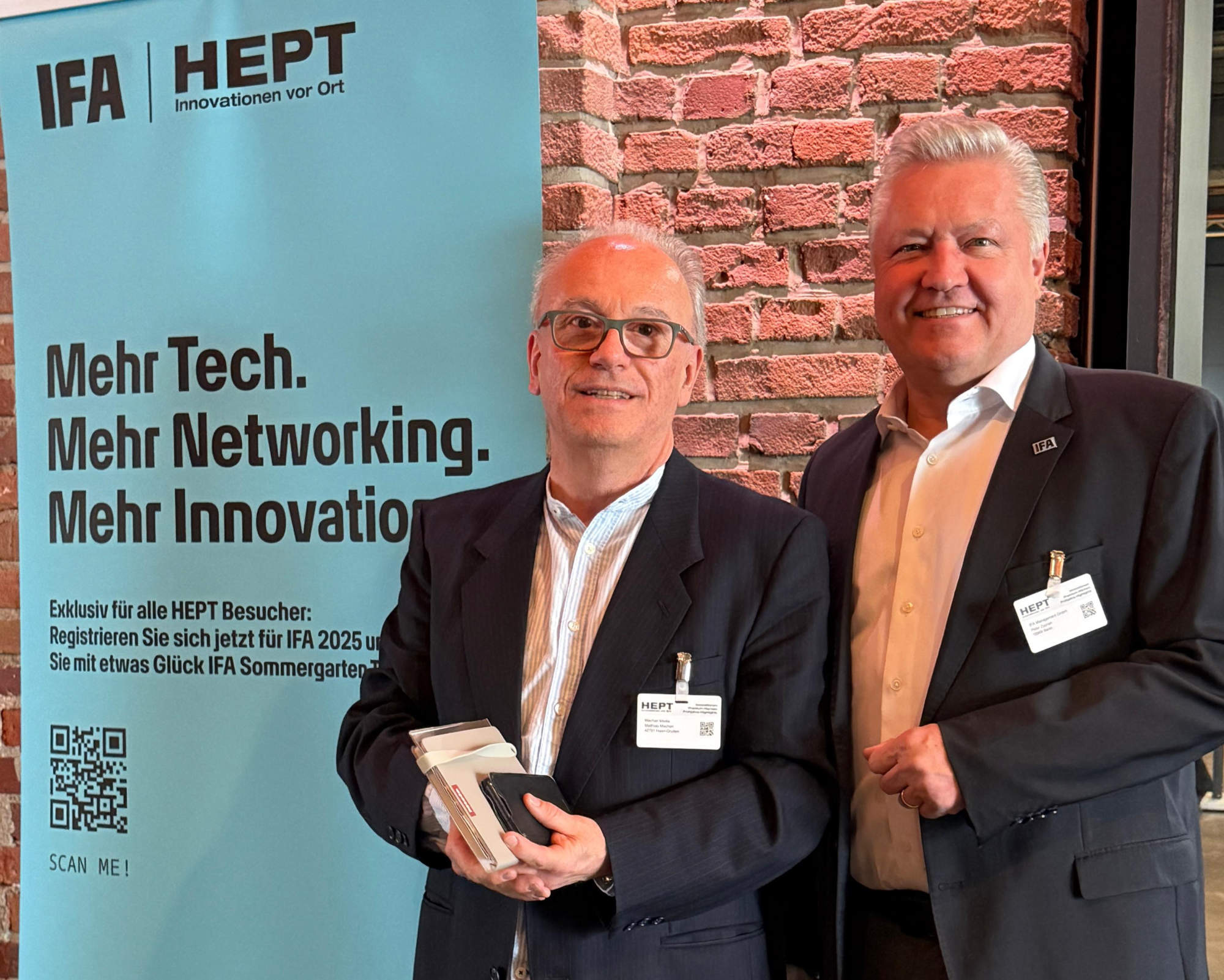 So auch 2025: „Die Händler kommen gerne, fühlen sich wohl und bleiben da“, hat IFA Retail Ambassador Peter Zyprian, der zusammen mit IFA Management CEO Leif Lindner entweder einzeln oder als Team bei allen Tour-Standorten vor Ort war, beobachtet. Vor allem aber: „Es kommen alle! Die Mitglieder der Kooperationen, die Freien und Mediasaturn.“ Grund genug für die beiden IFA-Macher, vor Ort Flagge zu zeigen und den HEPT-Austellern wie dem Handel reichlich Wertschätzung zu zeigen.