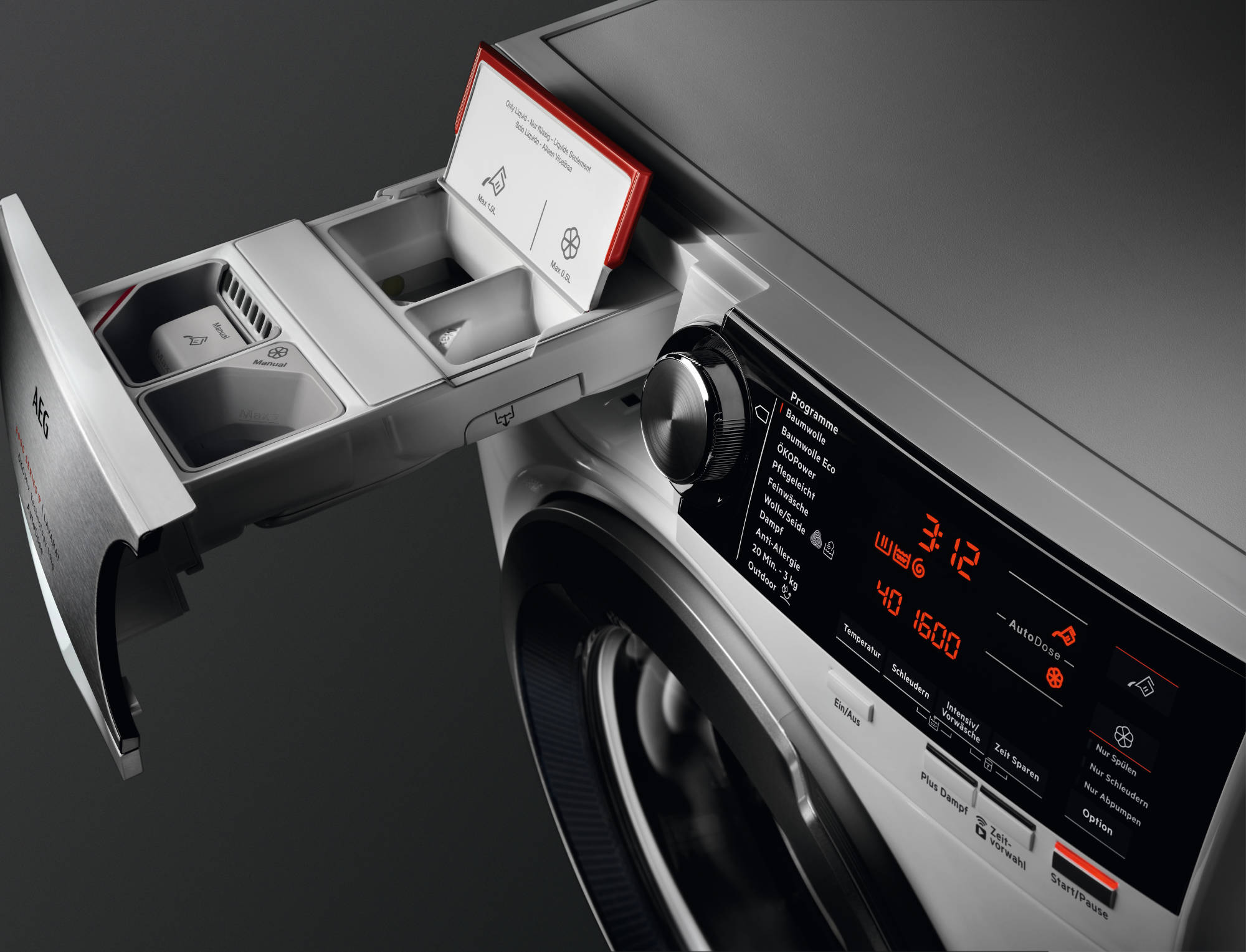 Die innovative AutoDose Waschmaschinen-Schublade von AEG leistet einen Beitrag zu mehr Nachhaltigkeit.