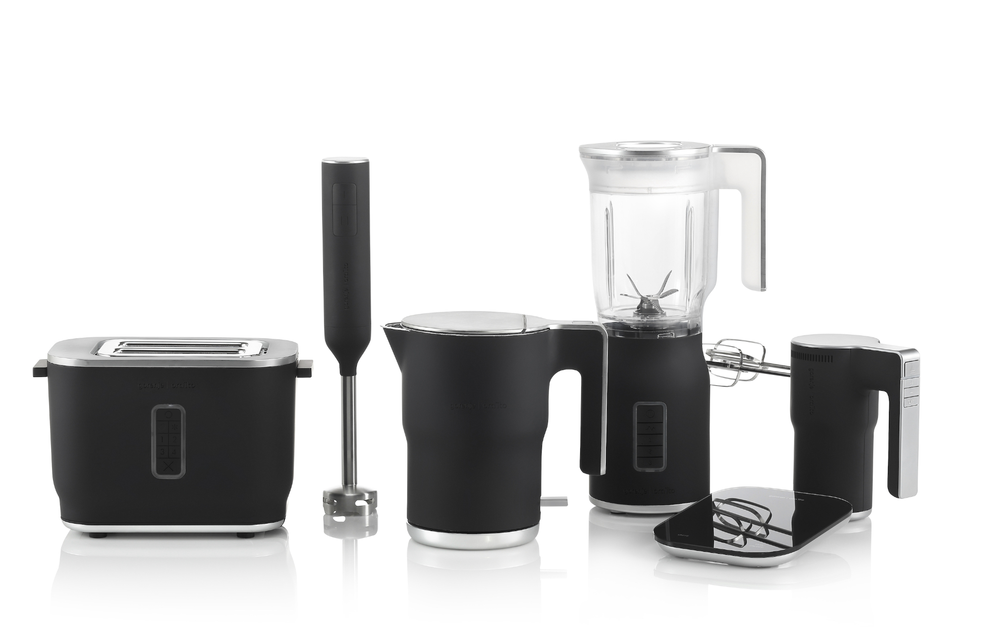 In Zusammenarbeit mit dem französischen Star-Designer ist eine exklusive Küchenhelfer-Kollektion entstanden: Toaster, Wasserkocher, Stab-, Hand- und Standmixer sowie die Küchenwaage bieten ein matt-schwarzes Soft-Touch-Finish, das durch stilvolle Metallapplikationen ergänzt wird.