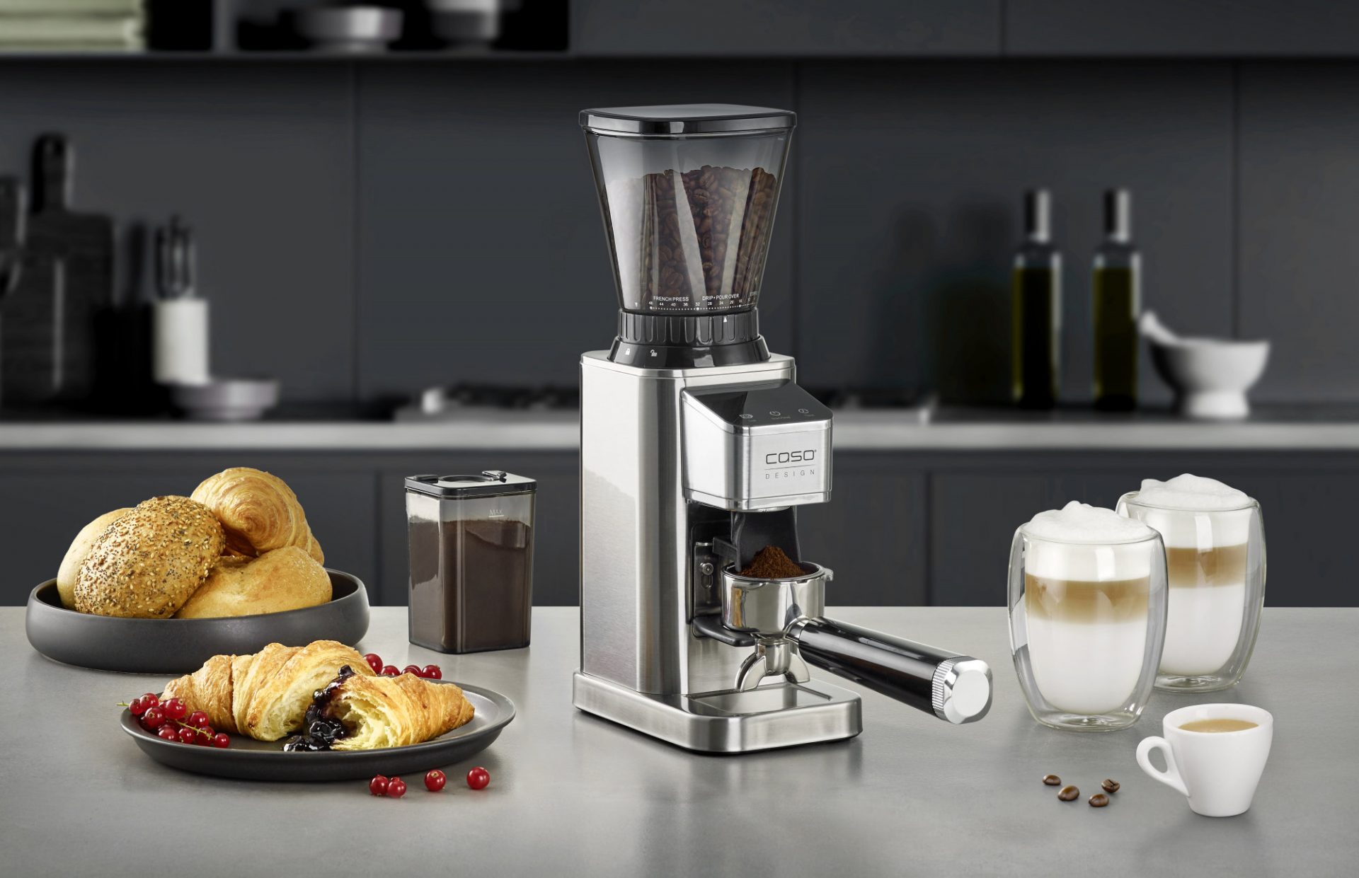 Mit der neuen Kaffeemühle BaristaChef Inox von Caso werden die Bohnen aromaschonend und nach Wunsch gemahlen.