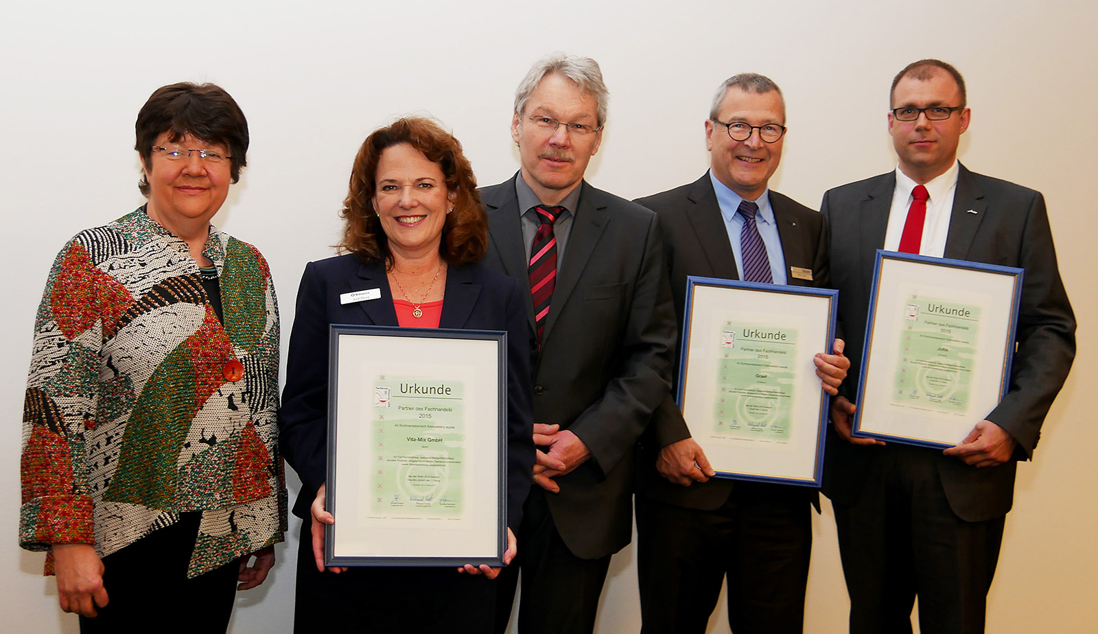 Die Ehrung der Partner 2015 nahm im Rahmen der Messe Ambiente Norbert Caesar, Vorsitzender des FHG und geschäftsführender Gesellschafter der Caesar Handelsgesellschaft mbh, Bremen, zusammen mit seiner Vorstandskollegin Hildegard Kaefer, Geschäftsführerin des Porzellanhauses Kaefer GmbH & Co. KG in Sohren, vor.