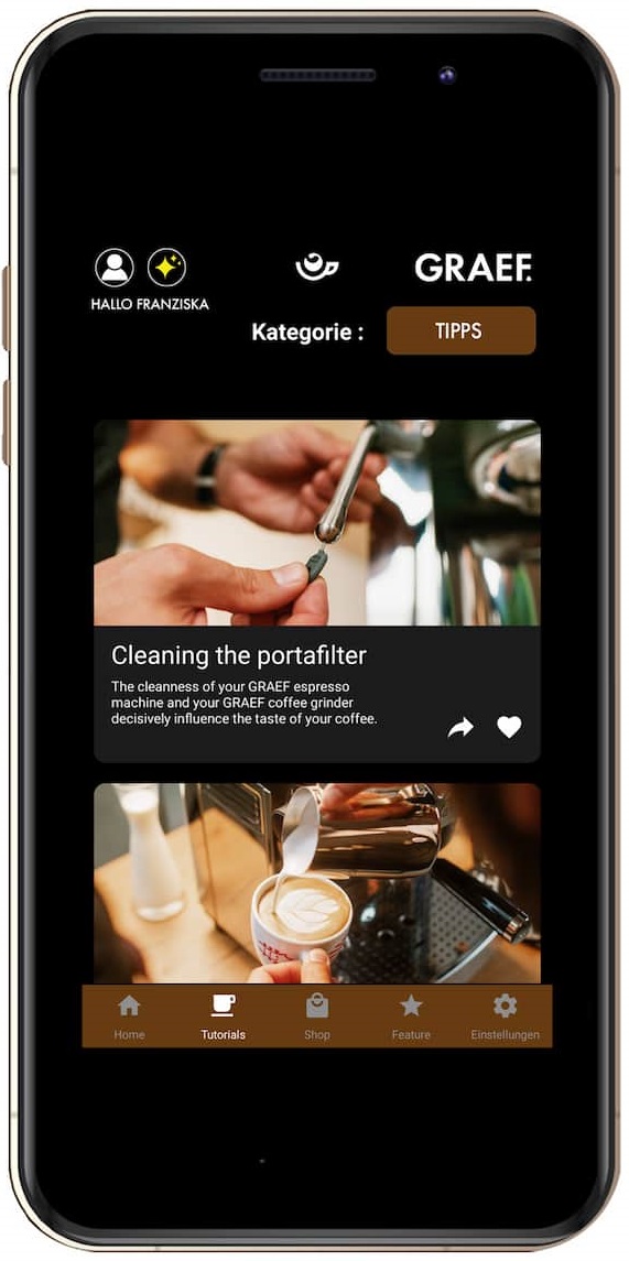 Die Inhalte wurden in enger Zusammenarbeit mit Raffaele Iuliucci, Barista und Espresso-Italiano-Champion 2018, und Michael Gliss, Diplom-Kaffeesommelier, erstellt. „Zum Start wollten wir vor allem Anfängerinnen und Anfängern überschaubare, aber dafür sehr gezielte Informationen und Handlungsempfehlungen anbieten, damit sie nicht überwältigt werden und sich an die Maschine trauen“, erklärt Graef. Und: „Wir wollen unsere Produkte erlebbar gestalten.“