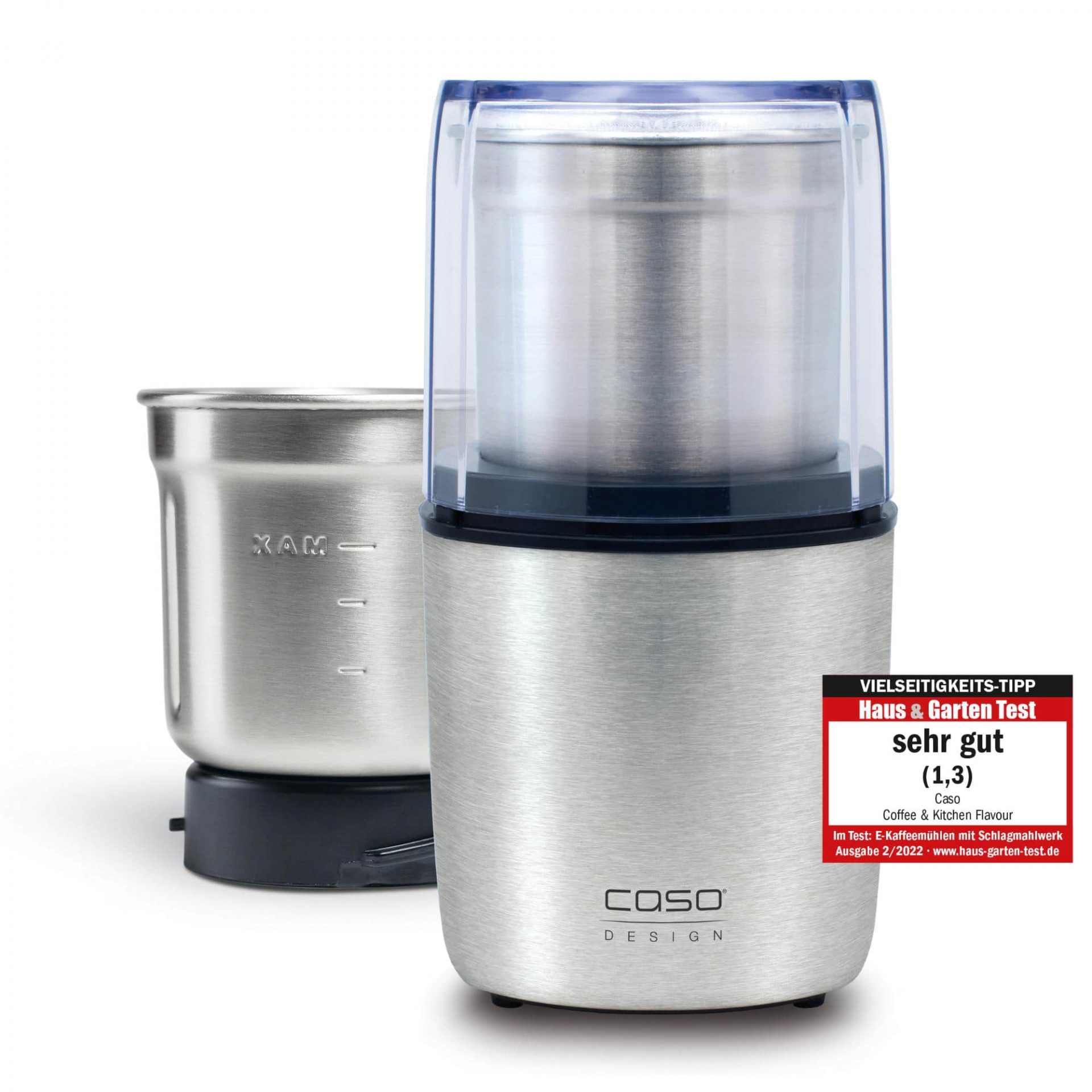 Die Coffee & Kitchen Flavour von Caso präsentiert sich als elektrische Mühle nicht nur für Kaffee – auch für Nüsse, Gewürze und vieles mehr ist sie bestens geeignet. „Haus & Garten Test“ bewertet die Mühle in der Ausgabe 2/2022 mit der Note „sehr gut“ (1,3).