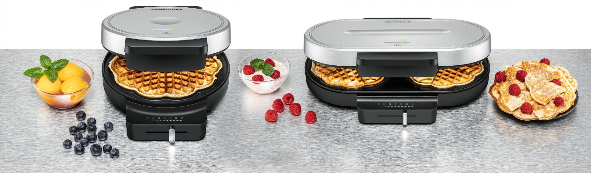 Damit die Zubereitung von Waffeln schnell und leicht von der Hand geht, bietet Rommelsbacher die beiden Waffel Automaten WA 850 und WA 1250.