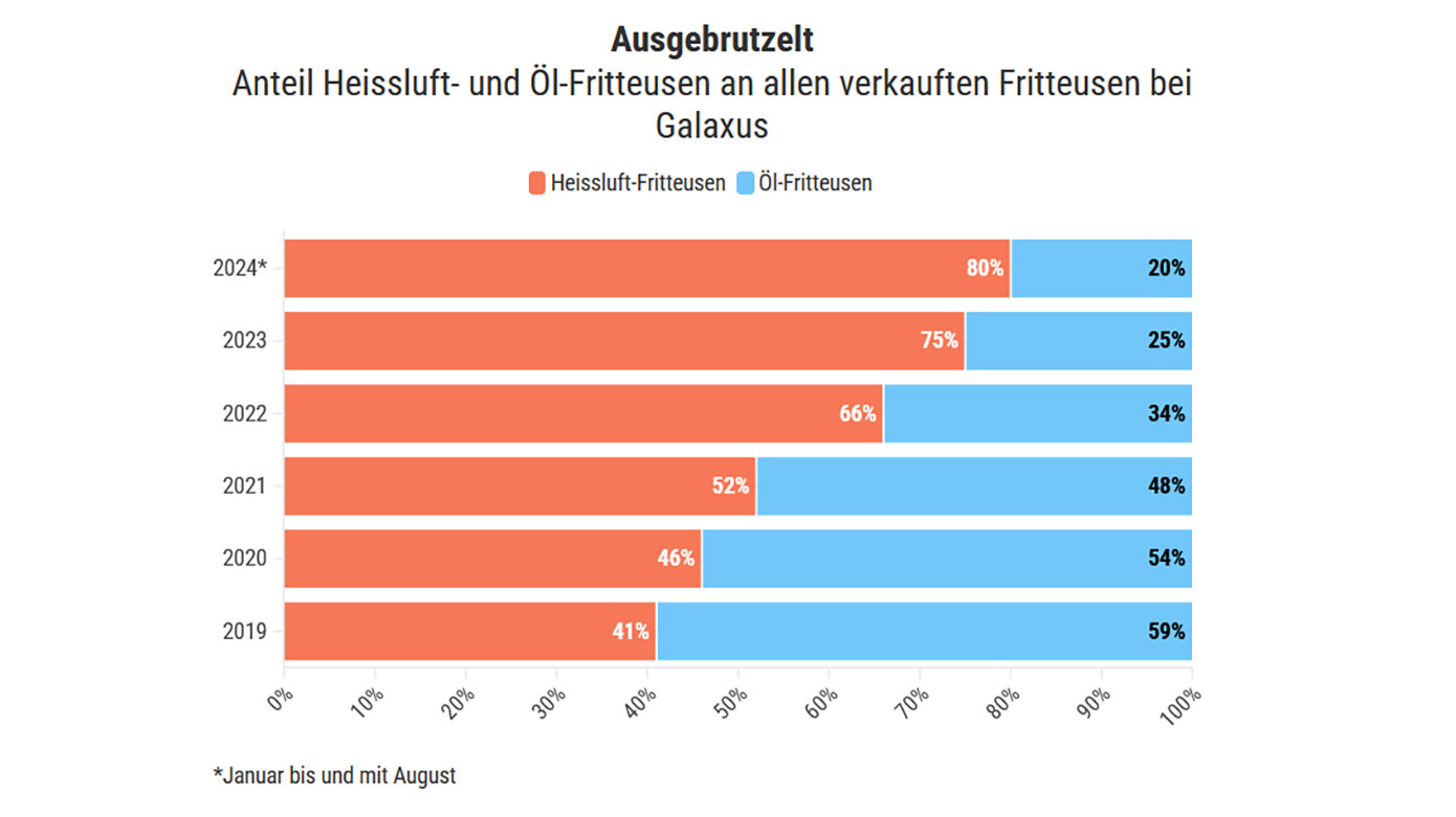 Acht von zehn bei Galaxus gekauften Fritteusen laufen heute mit heißer Luft, nur noch zwei mit Öl.