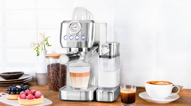 Der neue Genuss-Verstärker von Gastroback sorgt mit Zweikreis-Thermoblock-System und Vorbrüh-Funktion für eine schnelle Aufheizzeit sowie mit 15 bar Pumpendruck aus der professionellen ULKA-Espressopumpe für eine ordentliche Leistung. Die Espressomenge lässt sich individuell speichern, ein elektronischer PID-Regler überwacht gradgenau die Wassertemperatur.
