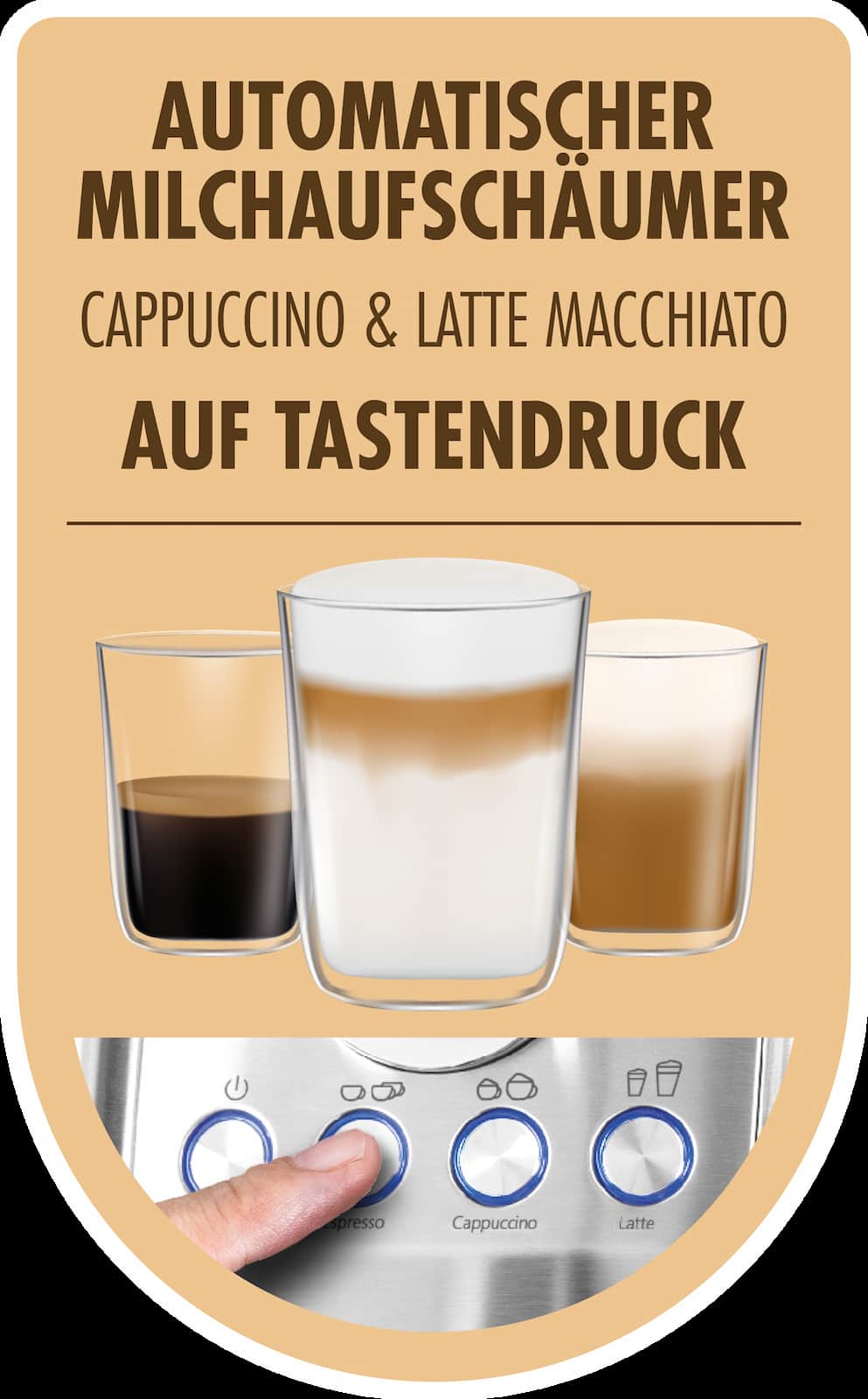 Beim Modell Design Espresso Piccolo Pro M schäumt ein integrierter automatischer Milchaufschäumer alle Milchsorten und Milchalternativen, der dazugehörige Milchbehälter (700 ml) ist abnehmbar und für die Aufbewahrung im Kühlschrank und für die Reinigung in der Spülmaschine geeignet. Auch hier ein Zweikreis-Thermoblock-System und die Vorbrüh-Funktion für eine schnelle Aufheizzeit sowie mit 20 bar Pumpendruck aus der ULKA-Espressopumpe für eine ordentliche Leistung. Die Milchschaum- und Espressomenge lässt sich individuell speichern.
