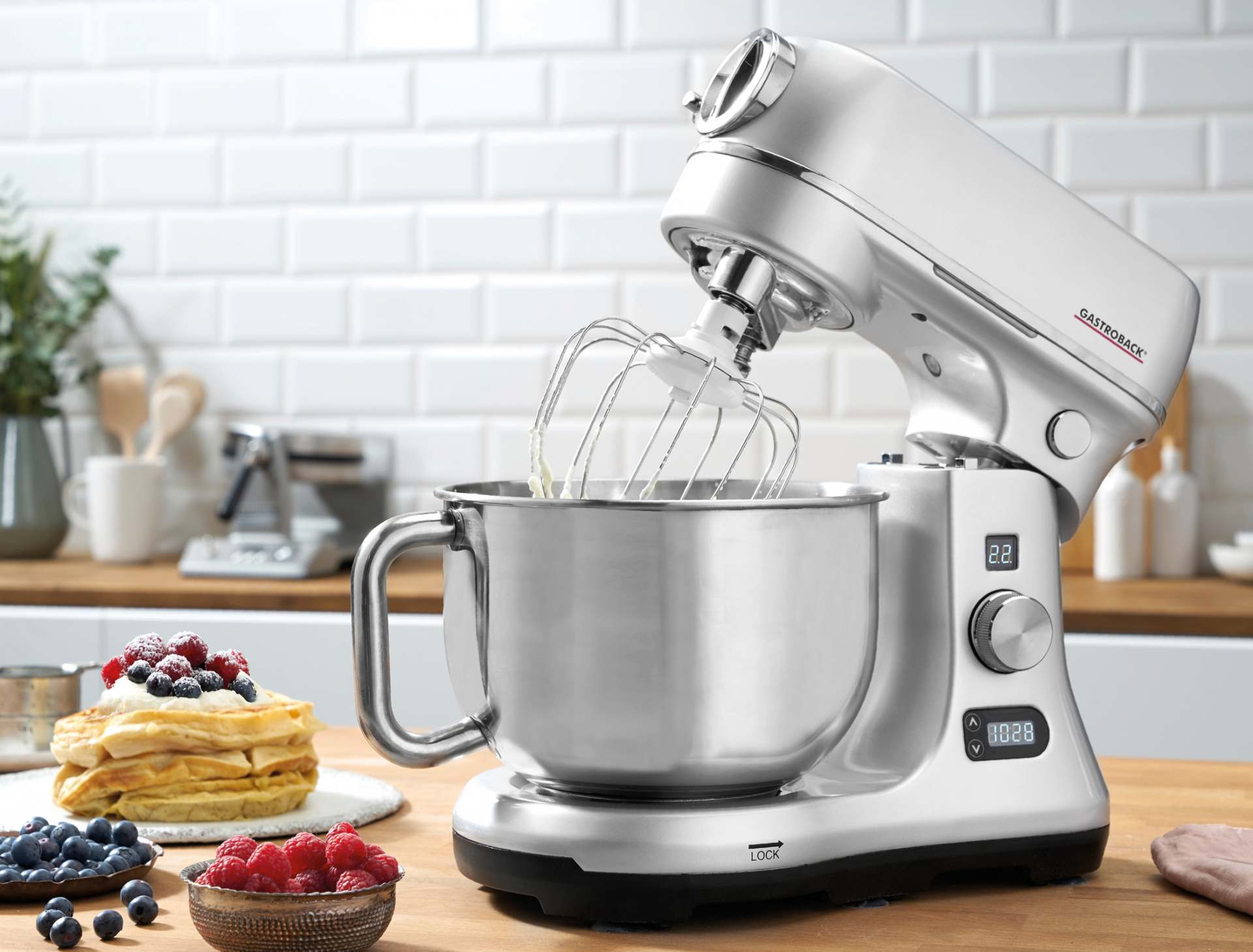 Die Gastroback Küchenmaschine Design Advanced Digital erledigt die Küchenmaschine beim Kochen und Backen die verschiedensten Aufgaben. Mit Fleischwolfaufsatz und vielfältigem Zubehör wird die Küchenmaschine zum Allrounder.