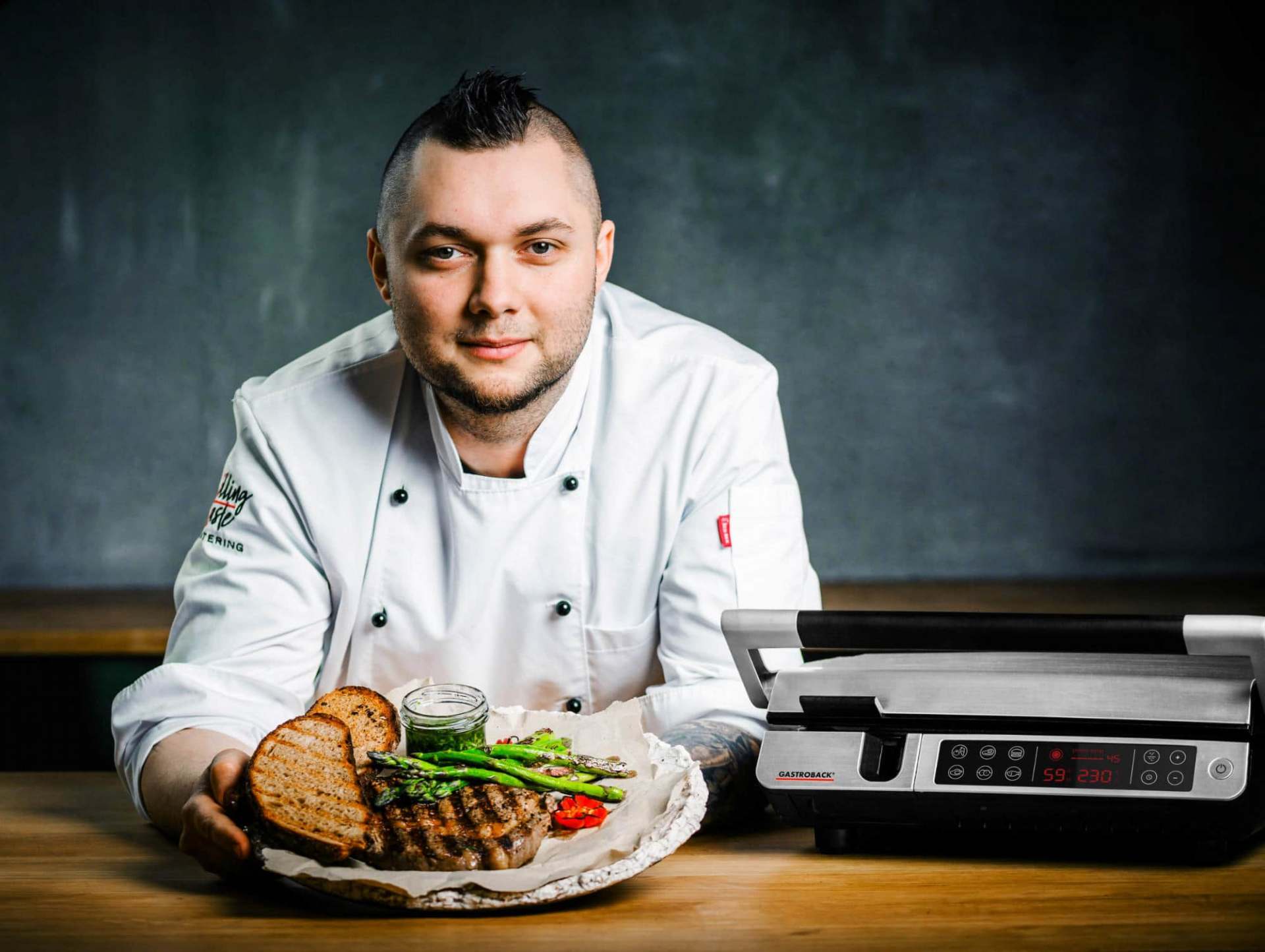 Im neuen Livestream-Bereich von Gastroback bereitet der Profikoch und leidenschaftliche Griller Moritz „Moe“ Crone-Rawe am 15. Mai von 13.00 bis 13.40 live zum Mittagslunch auf dem Design BBQ Advanced Control ein Premium Beef aus Schleswig-Holstein an gegrilltem, grünem Spargel, Bärlauch-Chimichurri und geröstetem Bauernbrot zu. Und: Eine vegane Variante mit Tempeh lädt auch Veganer und Vegetarier zu diesem Kochevent ein.