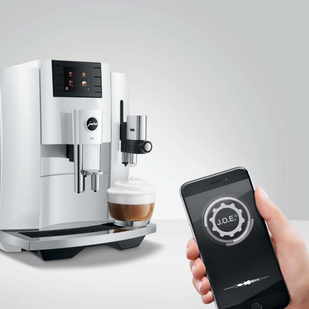 Darüber hinaus ist die E8 von Jura so komplett und umfassend ausgestattet wie nie zuvor: mit einem professionellen Aroma Grinder, der ein ideales Mahlresultat mit 12,2% höherem Aromaergebnis (das lässt sich wirklich messen und – noch wichtiger – auch schmecken) gewährleistet und zudem flüsterleise arbeitet. Mit einer leistungsfähigen Feinschaumdüse, die für weichen, feinporigen Milchschaum sorgt und zusätzlich über einen auswechselbaren Milchauslauf verfügt. Mit einer wirklich intuitiven Bedienung dank eines 2,8-Zoll-Farbdisplays – und einem neuen Bedienkonzept. Ein intelligenter Algorithmus erkennt die individuellen Genusspräferenzen und stellt sicher, dass der Vollautomat immer die bevorzugte Spezialität anbietet. Das ist eine Spielart der künstlichen Intelligenz, die unser Herz im Nu erobert hat. Darüber hinaus ist die E8 natürlich „wireless-ready“ und kann mittels der App „J.O.E.“ zum Bestandteil des smarten Connected Home werden.
