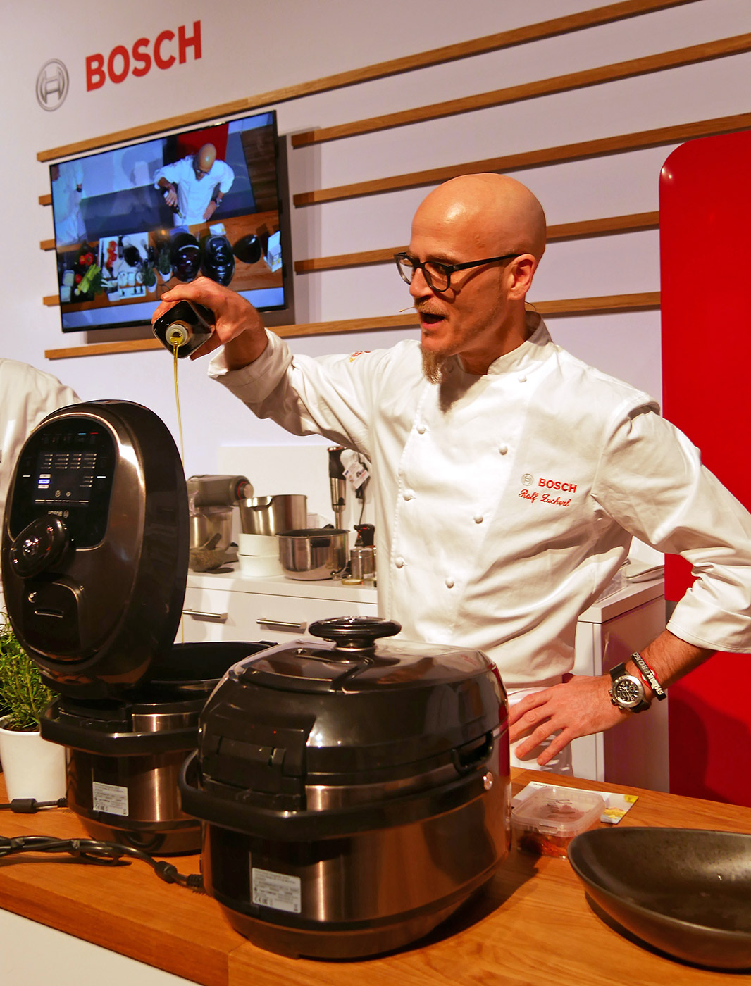 Ansonsten stand der entspannte Dialog mit den Handelspartnern abseits üblicher Messehektik auch bei der diesjährigen ProTour im Vordergrund. „In entspannter Atmosphäre stehen unseren Partnern die passenden Experten Rede und Antwort – eine ideale Plattform“, sagte Uwe Meergans, BSH, Consumer Products, Leitung Vertriebsregion Central, Eastern Europe. Möglichkeiten, den neuen Bosch Chefkoch AutoCook sowie die Experten der CP-Sparte zu treffen gibt es noch morgen in Hannover( Eilenriedhalle), danach in Leipzig (Globana Trade Center am 10. März), Nürnberg (Ofenwerk am 14. März) und München (Postpalast am 17. März).