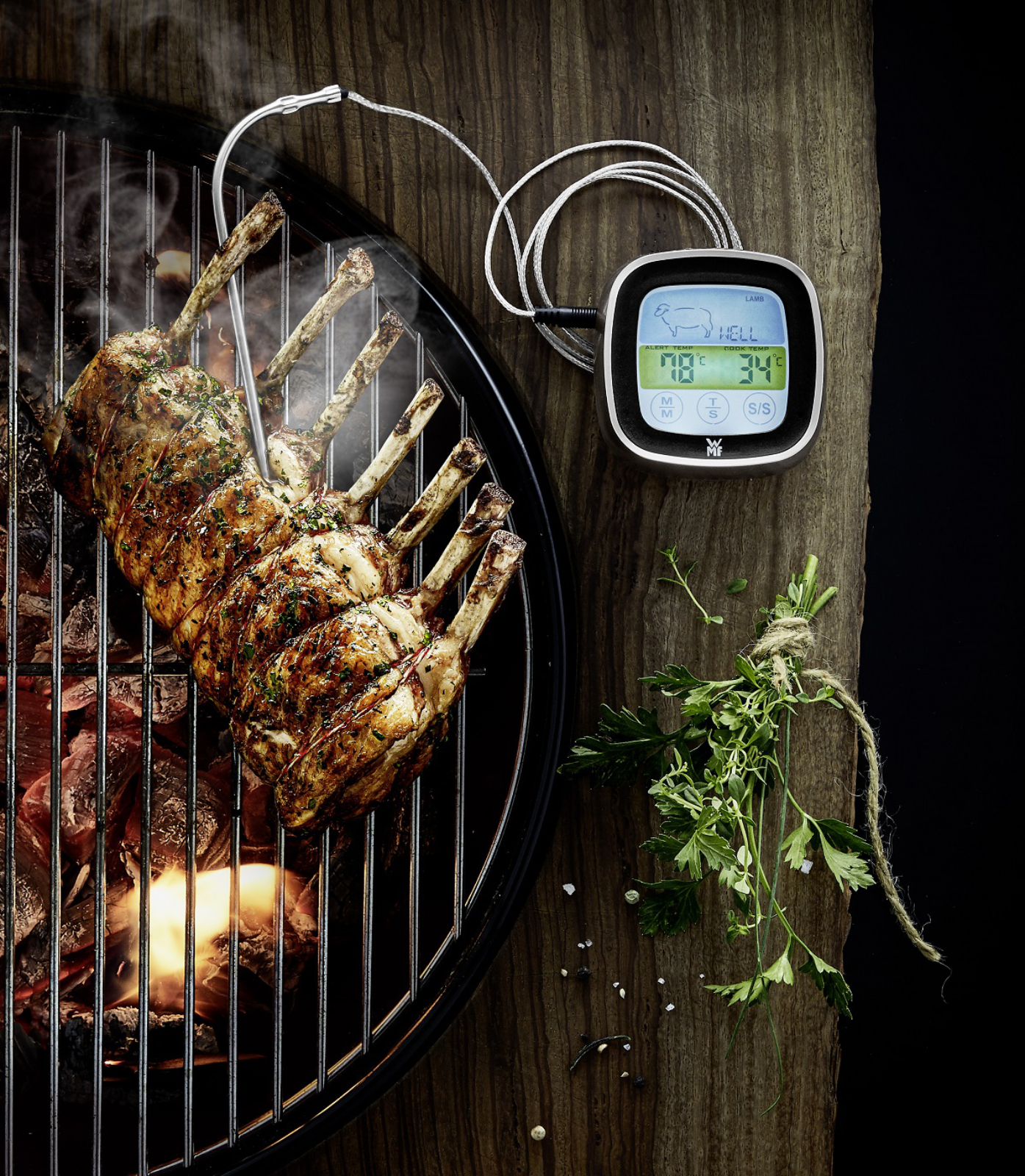 Der eine mag sein Steak medium, der andere rare. Und der, der am Grill steht, ist oft ratlos, wann der genaue Garpunkt erreicht ist. Das digitale Fleischthermometer mit beleuchtetem Touch-Display von der WMF macht das um einiges leichter. Und man kann es auch für den Sonntagsbraten im Backofen verwenden.