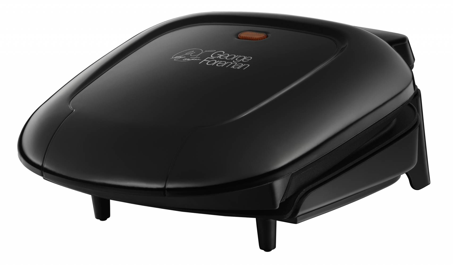 Der George Foremann Compact Fitnessgrill bietet eine 18 x 13 cm große Grillfläche für bis zu zwei Portionen. Die bewegliche obere Grillplatte passt sich optimal Speisengröße an und sorgt so für beste Grillergebnisse. Die fixierten Grillplatten sind mit einer hochwertigen Antihaftbeschichtung ausgestattet und ermöglichen eine einfache Reinigung.