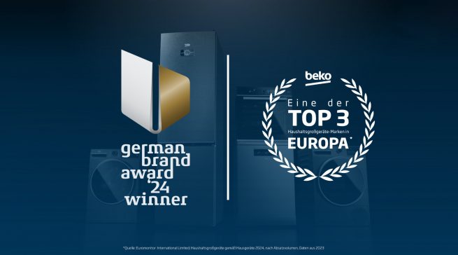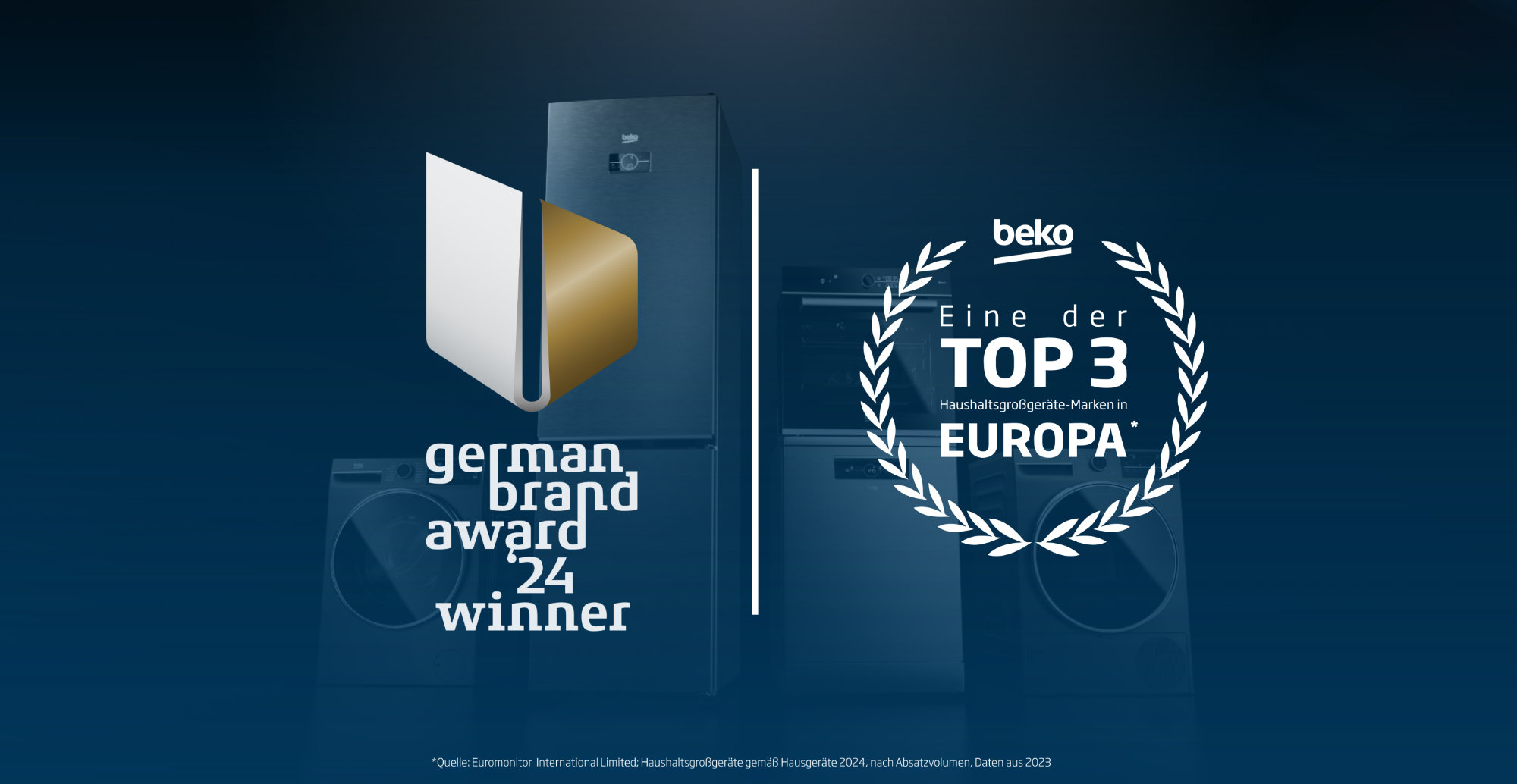 Beim German Brand Award ist Beko für seine Marketingkampagne „Top 3 – Spitzentechnologie für alle bezahlbar“ als „Winner“ in der Kategorie „Kitchen & Household Appliances“ ausgezeichnet worden.