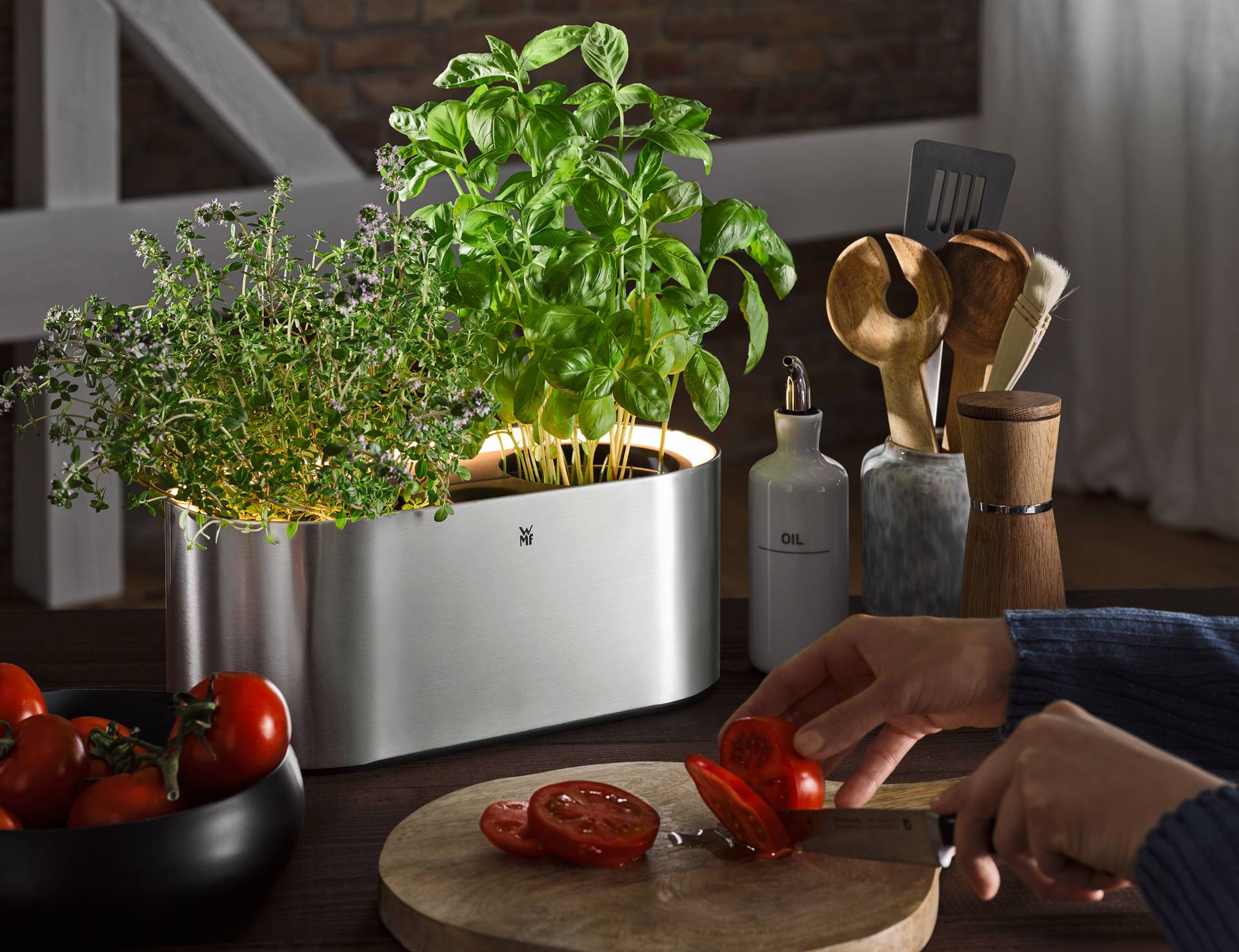 Kühlschränke sind zuhause die Hingucker und bei ihnen kann jetzt – je nach Geschmack und ganz einfach – die farbige Türfront (Bosch) ausgetauscht werden. Den Kräutergarten gibt es dank WMF nun mit Dochtbewässerung und in schickem Design mit LED-Beleuchtung für die Küche. Das Wallpaper-TV-Gerät verschmilzt praktisch mit der Wand. Und beim Kaffeevollautomat gibt es bei Jura jetzt Premium-Design und -Ausstattung schon in der mittleren Preisklasse.