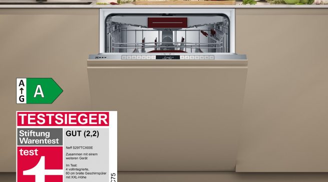 Der langfristige Nutzen fällt der Jury besonders auf: „Die niedrigsten Betriebskosten fallen beim XXL-Spüler von Neff an: knapp 1.200 EUR in zehn Jahren.” Nach der Berechnungsgrundlage von Stiftung Warentest sind das über 250 EUR weniger Betriebskosten als bei einem Vergleichsgerät mit dem schlechtesten Ergebnis im Test.