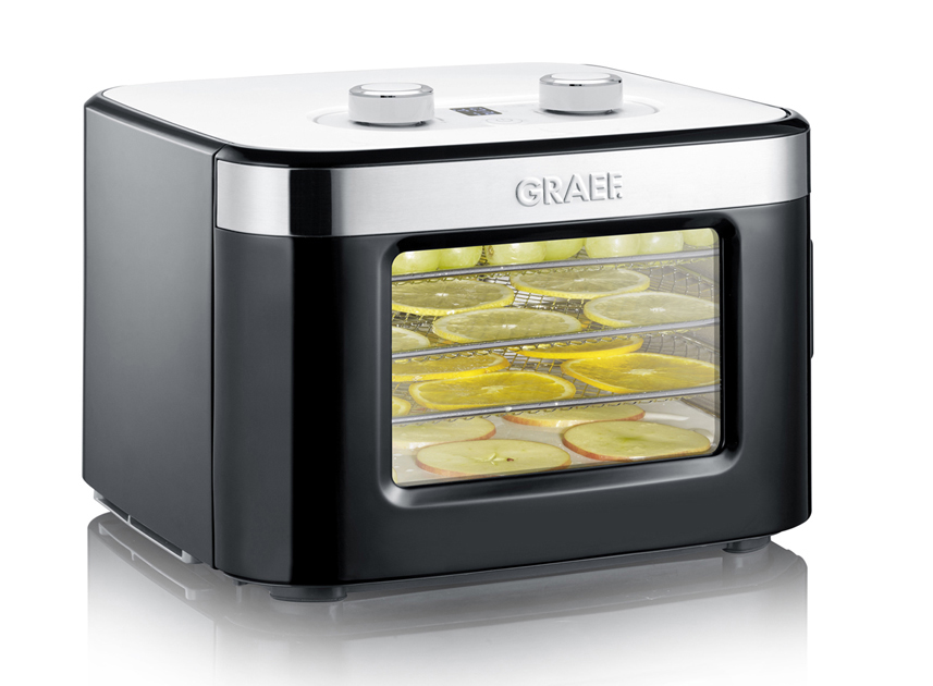 Knusprige Kartoffel- und Gemüsechips, leckeres Apfeltopping für das Müsli, knackige Nüsse für den Salat oder würziges Beef Jerky –Snacks & Co. liefert der Graef Mini-Dörrautomat DA 2042. Mit 3-D-Dörrtechnologie entsteht das ideale Trockenklima. Es verwandelt Lebensmittel wie Äpfel, Zitrusfrüchte, Rote Bete oder Fleisch und Fisch innerhalb weniger Stunden in vitaminreiche Chips und natürliche Snacks.