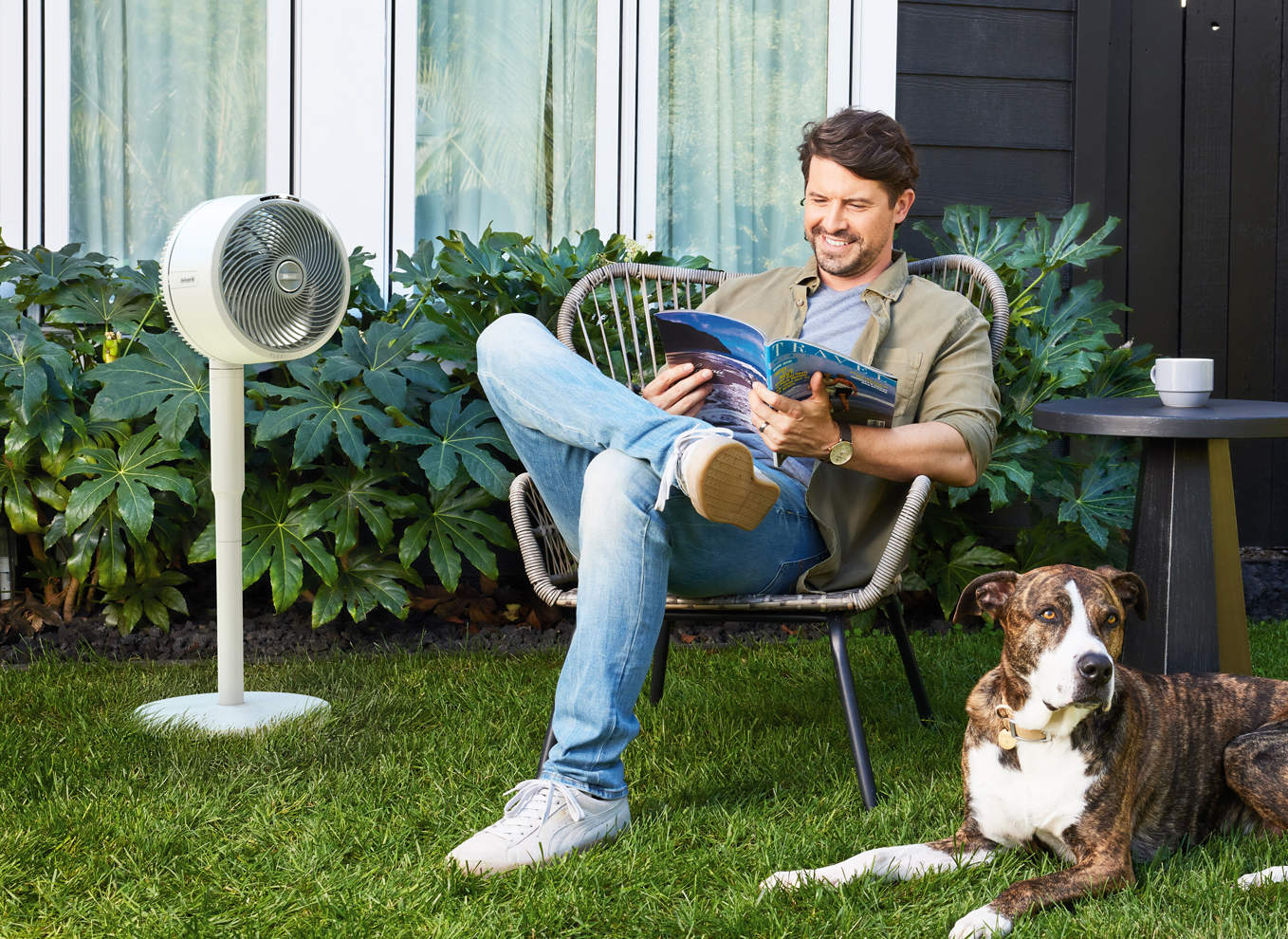 Der Ventilator ist für den Gebrauch in Räumen als auch im Außenbereich geeignet. Das strapazierfähige Material ist UV- und regenbeständig. Er kann mit oder ohne Kabel verwendet werden. Für maximale Flexibilität lässt sich der Ventilator von einem Standlüfter in einen Tischventilator umwandeln. Die Reichweite beträgt bis zu 20 Meter.