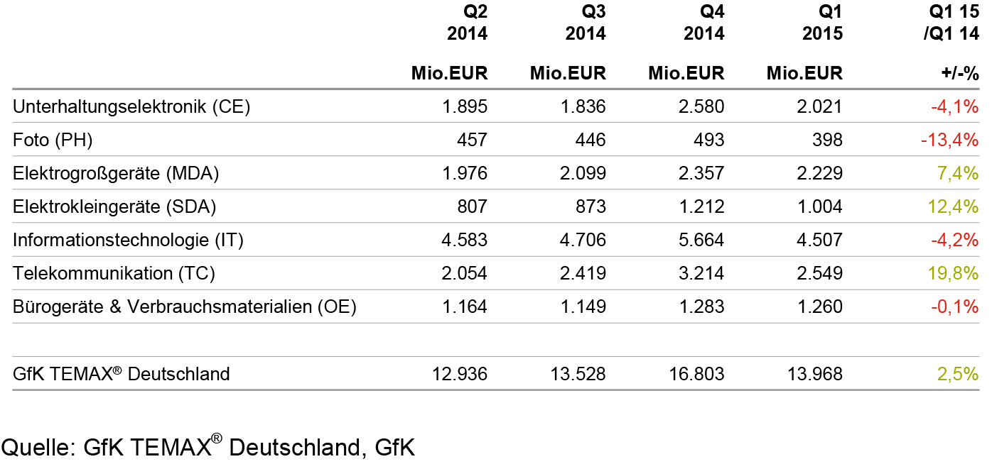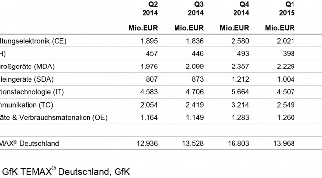 Ein starkes erstes Quartal 2015 verzeichneten die Sektoren Elektroklein- und Elektrogroßgeräte mit Zuwächsen in nahezu allen Segmenten, so das Ergebnis des aktuellen GfK Temax Deutschland.