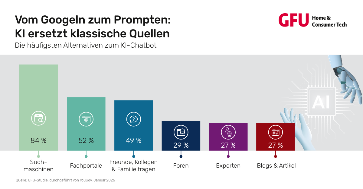 Ein zweiter Studienteil zur Rolle von KI-Sprachmodellen beim Einkaufsverhalten im Technologiebereich wurde im Auftrag der GFU im Januar 2026 erhoben. Die Veröffentlichung der Ergebnisse ist für Ende Februar 2026 angekündigt.