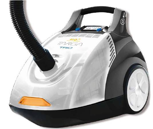 Das Highlight der Serie ist der Targa Trio. Er verfügt über 1600 Watt Leistung, eine Wet & Dry Filterkassette mit 1,5 Liter Volumen und eine spezielle Wasserfiltration Dank der innovativen Technologie wird die schmutzige Ansaugluft im Gerät mit Hilfe von Wasser in einem zweistufigen Prozess besonders gut gesäubert, so dass die ausgeblasene Luft außergewöhnlich rein ist. In der übrigen Ausstattung ist das Modell mit Basic und Duo identisch, verfügt aber zudem noch über eine Nassdüse.