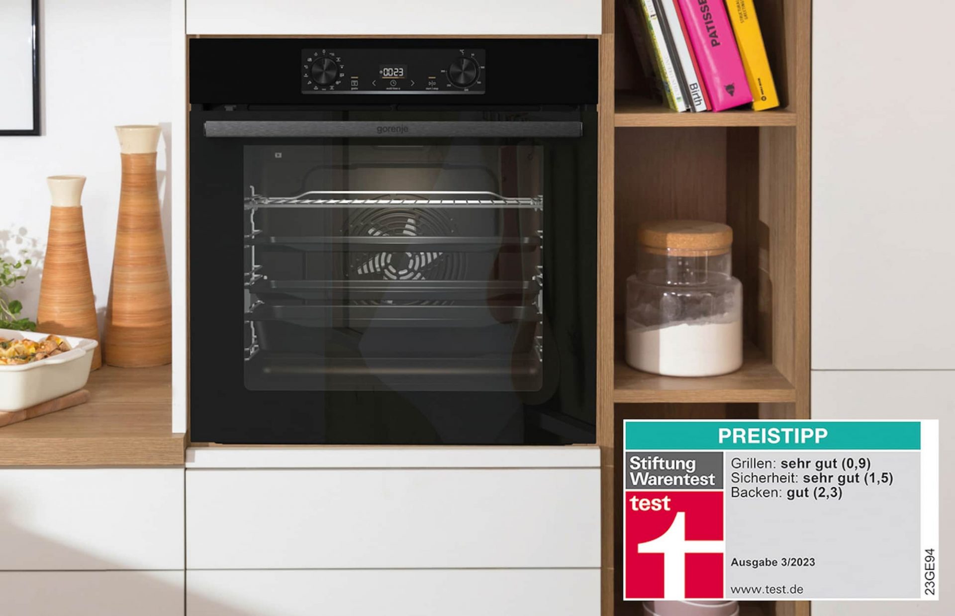 Die Stiftung Warentest (StiWa) hat elf Pyrolyse Backöfen genauer unter die Lupe (Test Magazin 03/2023) genommen. Dabei überzeugte der Gorenje OptiBake Einbaubackofen BPS6737E14BG besonders in punkto Preis-Leistung. Mit der Testnote 2,6 und einem aktuellen Marktpreis von 490 EUR geht das Gorenje-Modell als Preistipp aus dem Test hervor.