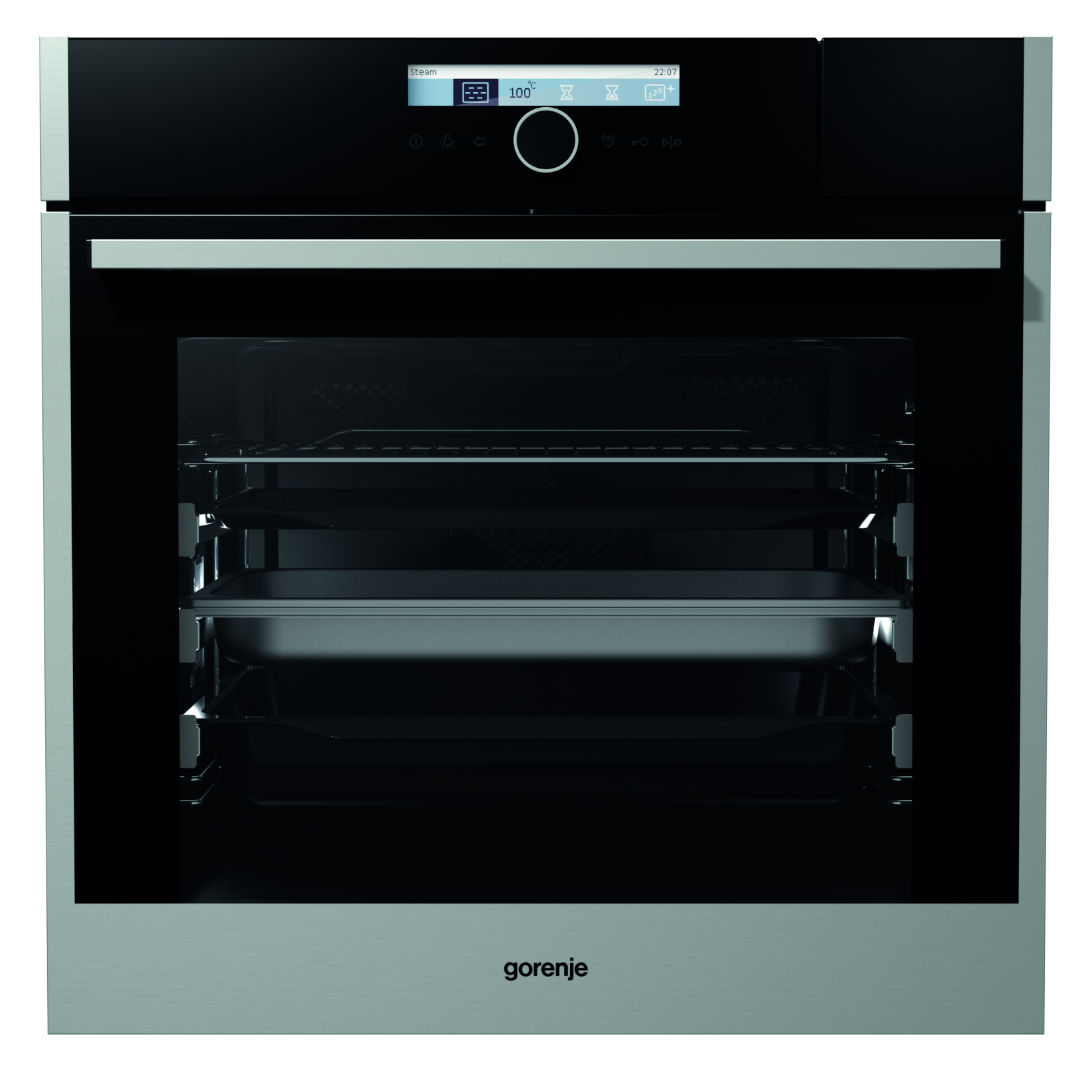 Mit innovativem ProCook Bedien- und Anzeigenkonzept ausgestattet, lassen sich die beiden Gorenje Dampfgarer BCS 789 S22X und BCS 589 S20X in mit dreifach verglaster Edelstahl-Vollglas-Backofentür (Ultra Cool Door) einfach per zentralem Bedienknebel sowie sechs Touch-Bedienfeldern über eine moderne DOT Matrix mit Textdisplay steuern. Neben drei individuell einstellbaren Bedienmodi – Automatik mit 90 voreingestellten Programmen, Dampfgaren mit 3 unterschiedlichen Intensitätsstufen sowie dem individuellen Profimodus Professional – zählen auch zahlreiche konventionelle Beheizungsarten wie beispielsweise Heißluft, Ober-/Unterhitze, Grillen, Pizzastufe, AutoRoast sowie attraktive Zusatzfunktionen wie schnelles Aufheizen, Warmhalten oder Tellerwärmen zum attraktiven Ausstattungsportfolio. Das innovative Programm StepBaking – Mehrphasen-Kochen/Backen – ermöglicht zusätzlich die Voreinstellung von bis zu drei aufeinanderfolgenden Kombinationen an Beheizungsarten, Temperatureinstellungen und Laufzeiten.